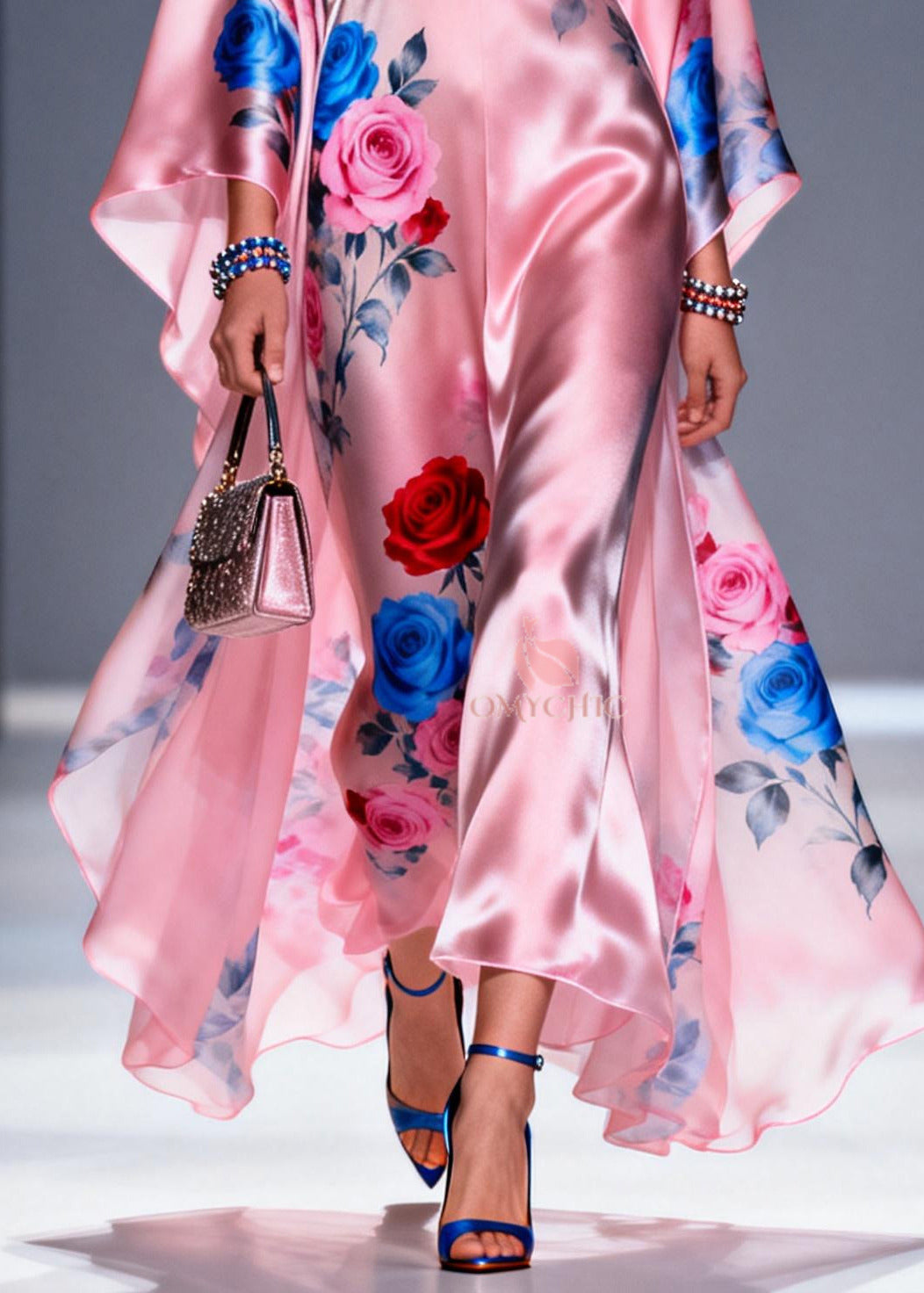 Modern Rose Oversized Side Open Chiffon Vacation Dresses Summer