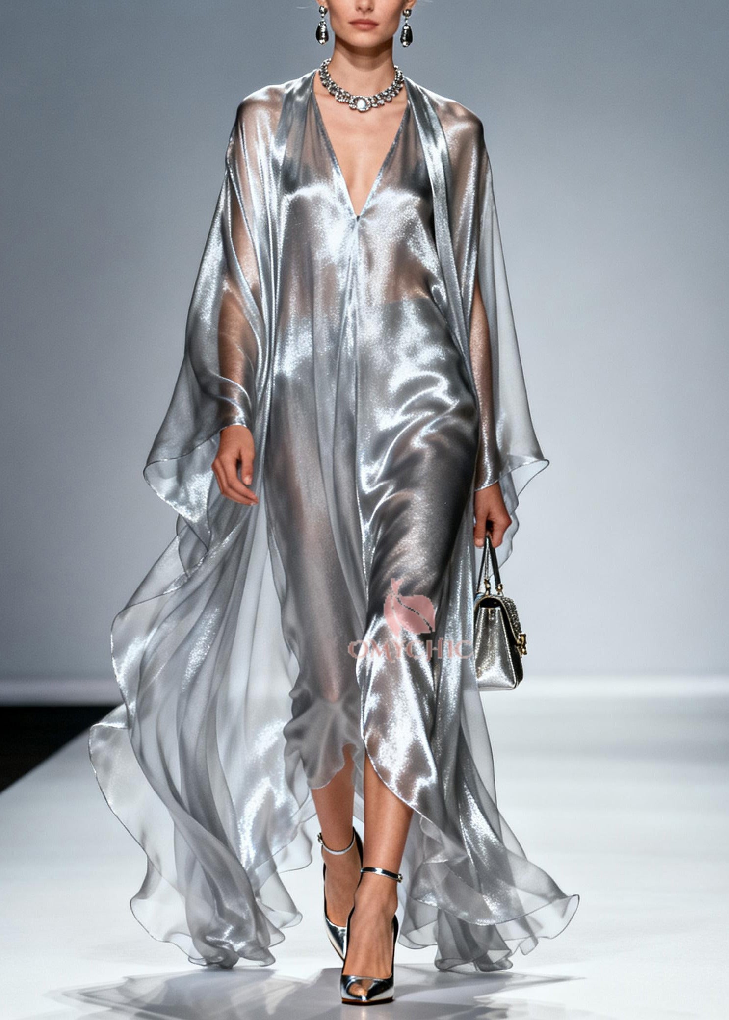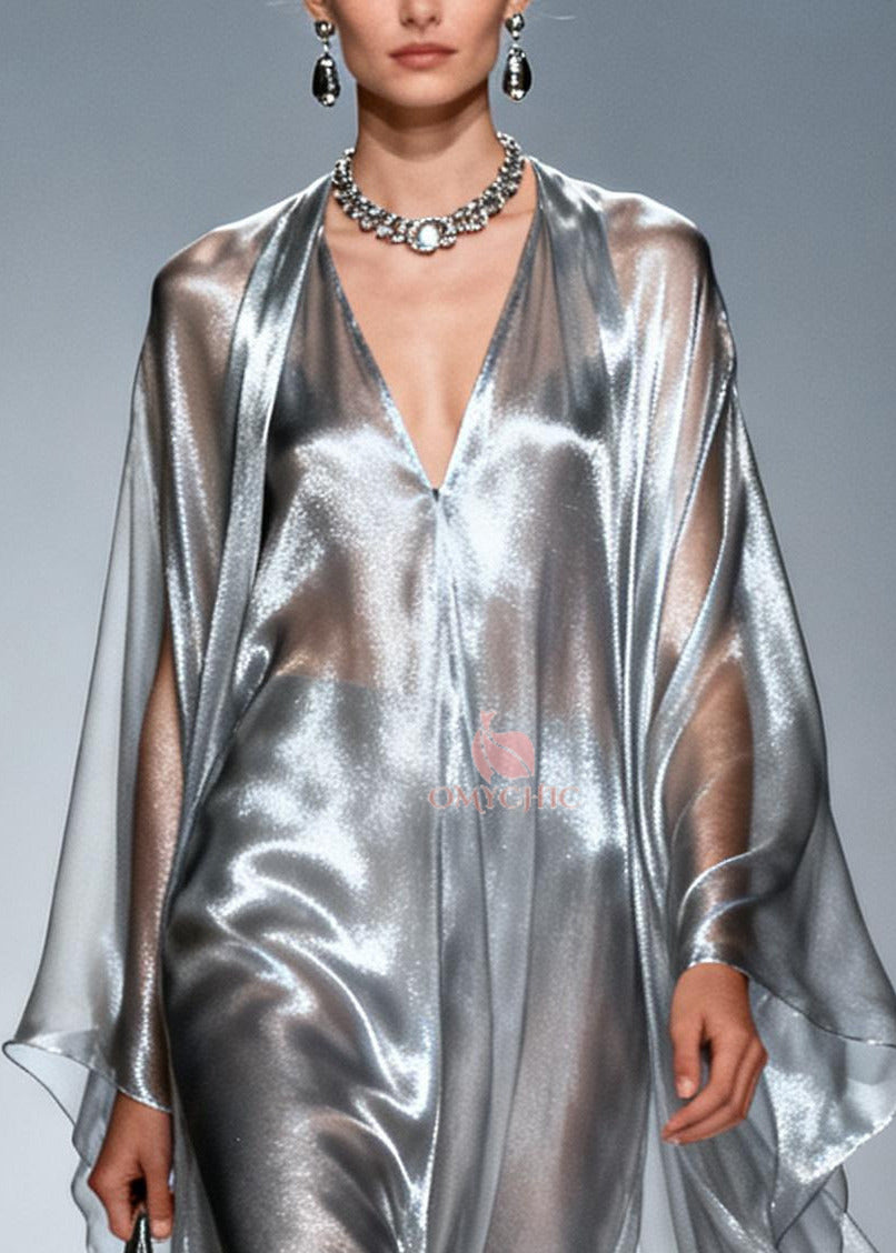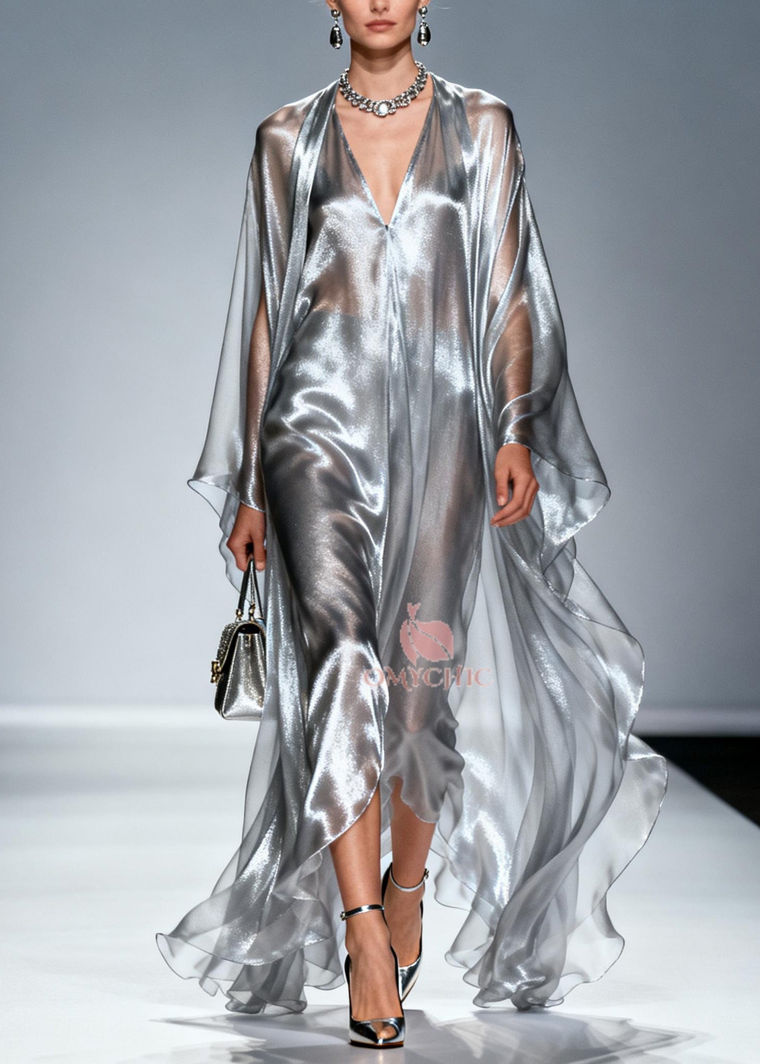 Women Silvery Oversized Draping Chiffon Maxi Dresses Summer