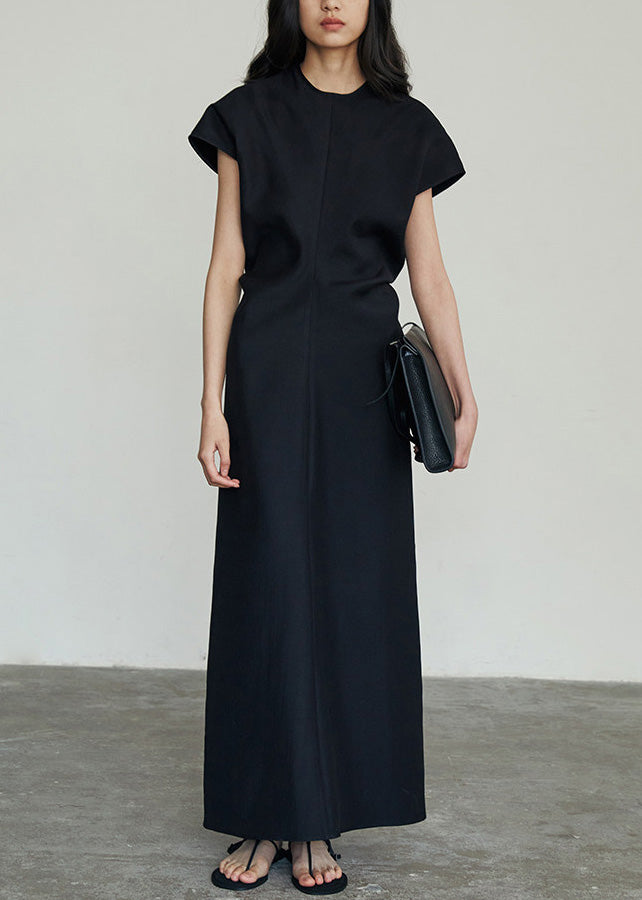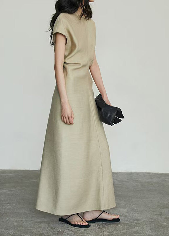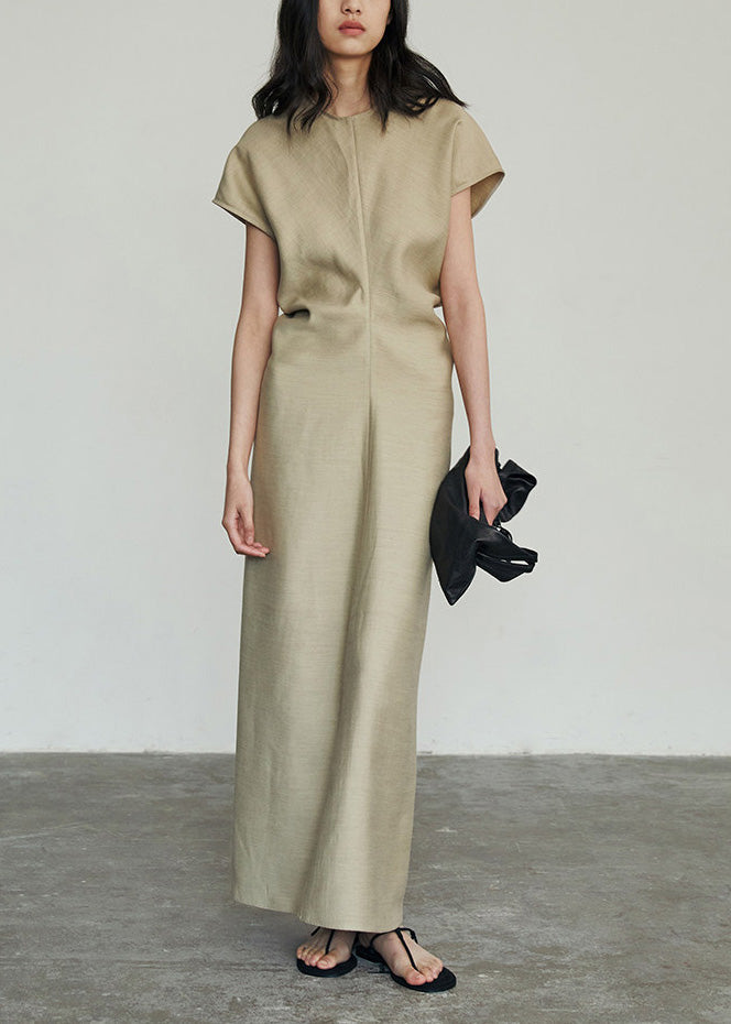 Classy Khaki O Neck Slim Fit Cotton Long Dresses Summer