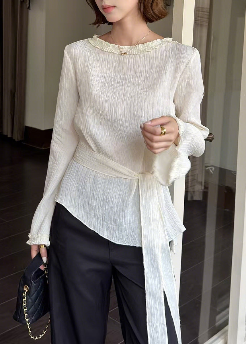 Women White Asymmetrical Tie Waist Cotton Tops Spring