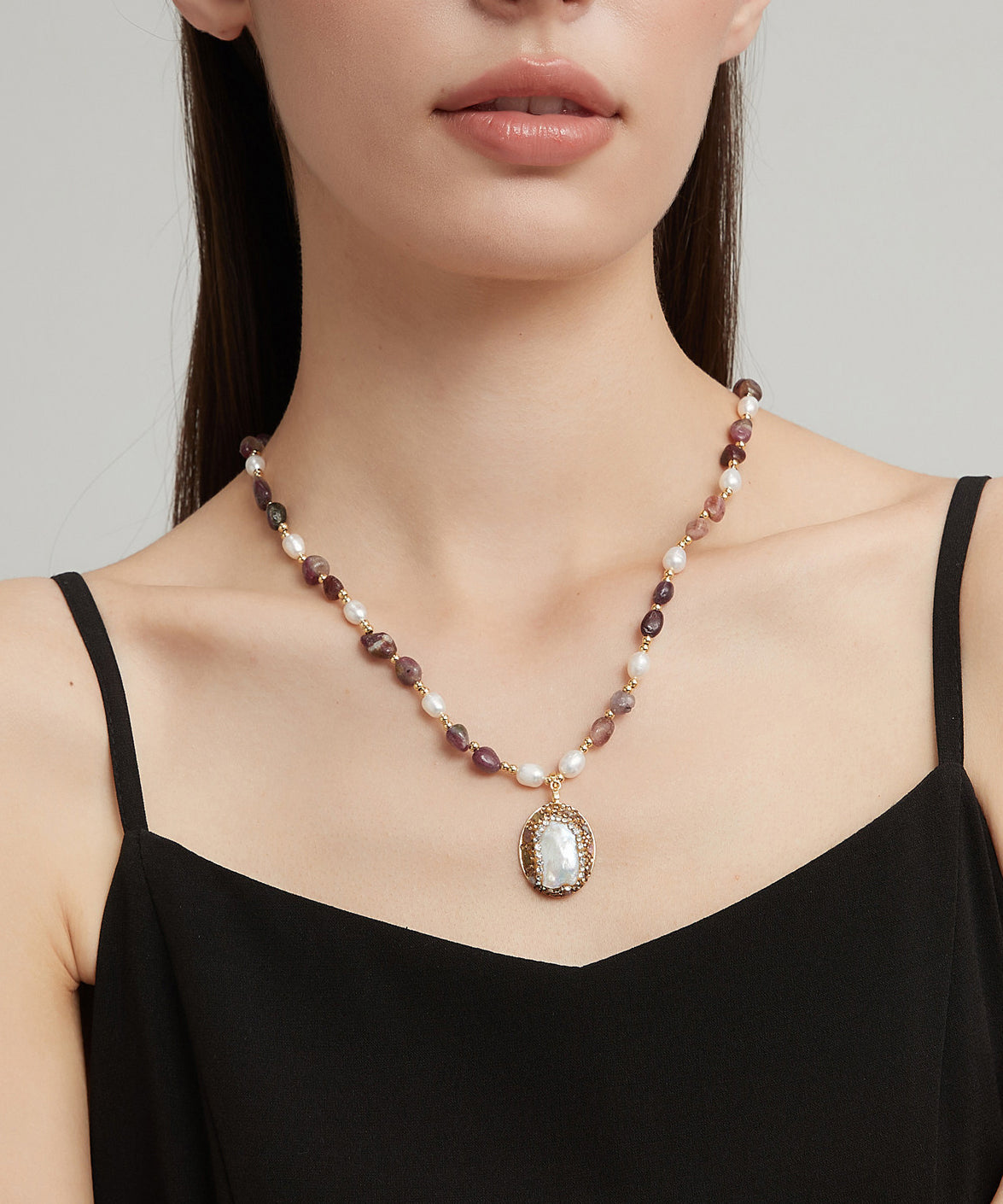 French Baroque Pearl Monet's Garden Pendant Necklace