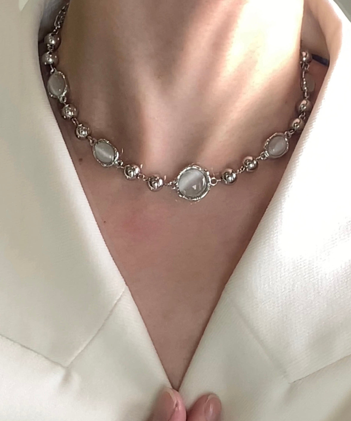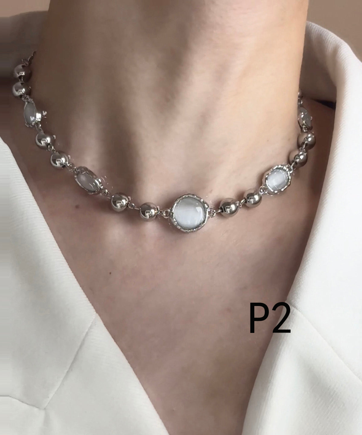 Beautiful Silvery Asymmetrical Design Pearl Metal Choker