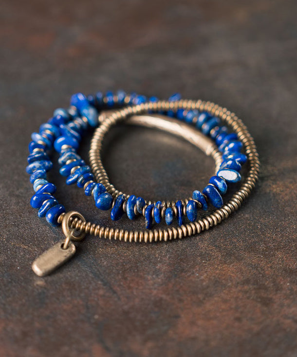 Original Design Lapis Lazuli Asymmetrical Design Copper Charm Bracelet