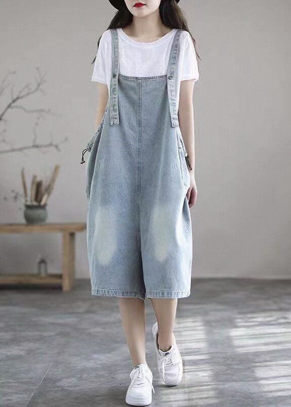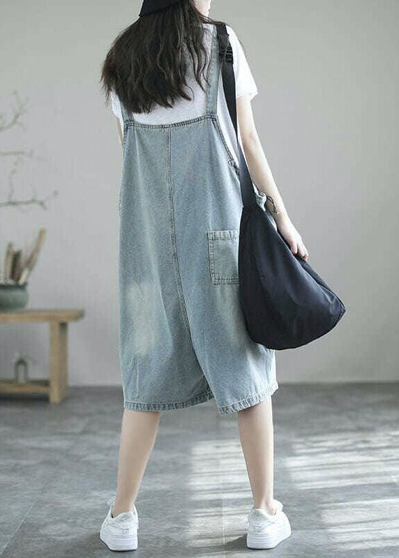 Boutique Light Blue Pockets Denim Half Jumpsuits Summer