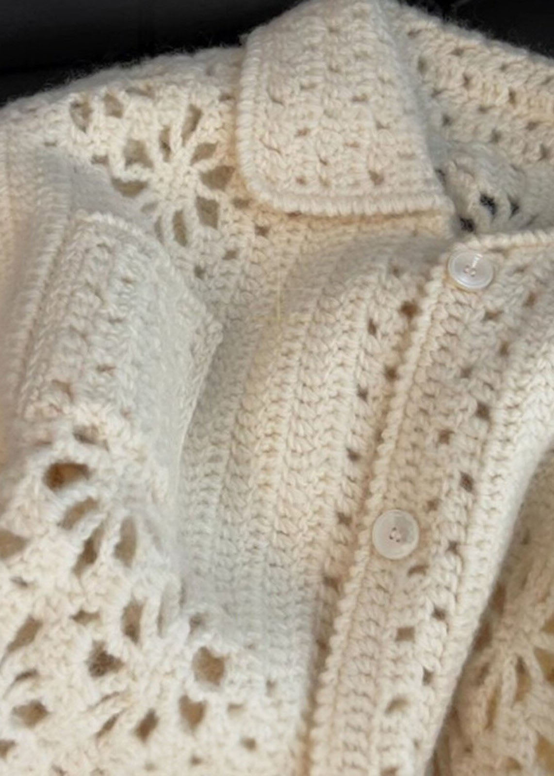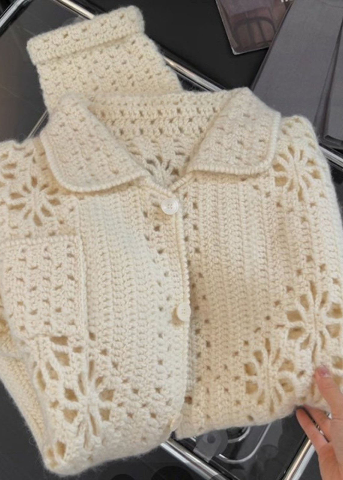 French Apricot Peter Pan Collar Hollow Out Knit Coats Spring