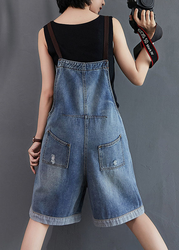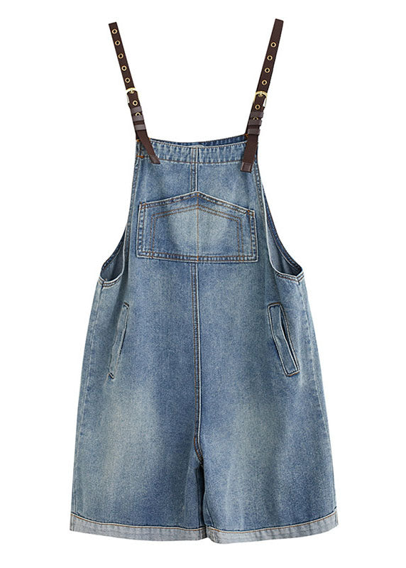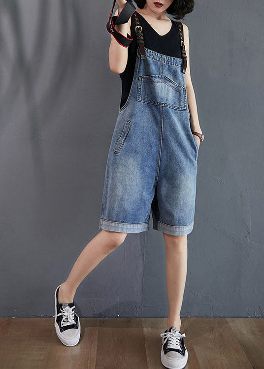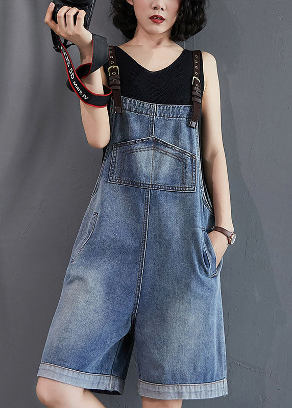 French Blue Pockets Denim Overalls Jumpsuit Summer