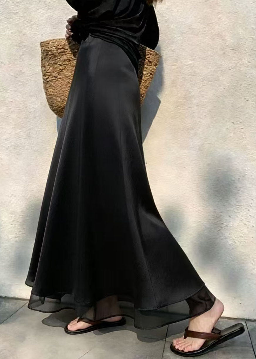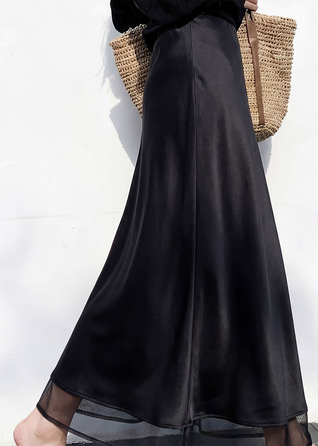 Italian Black Patchwork High Waist Silk Skirt Spring