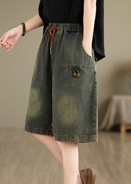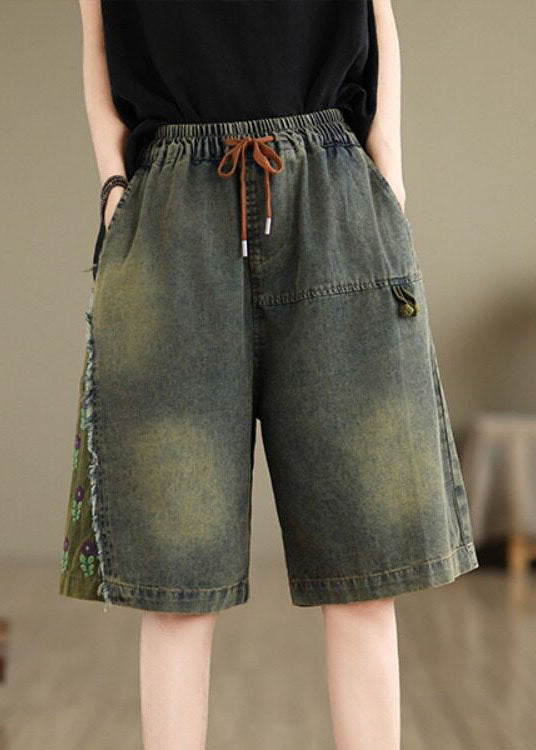 Summer Loose Casual Embroidered Elastic Waist Denim Shorts