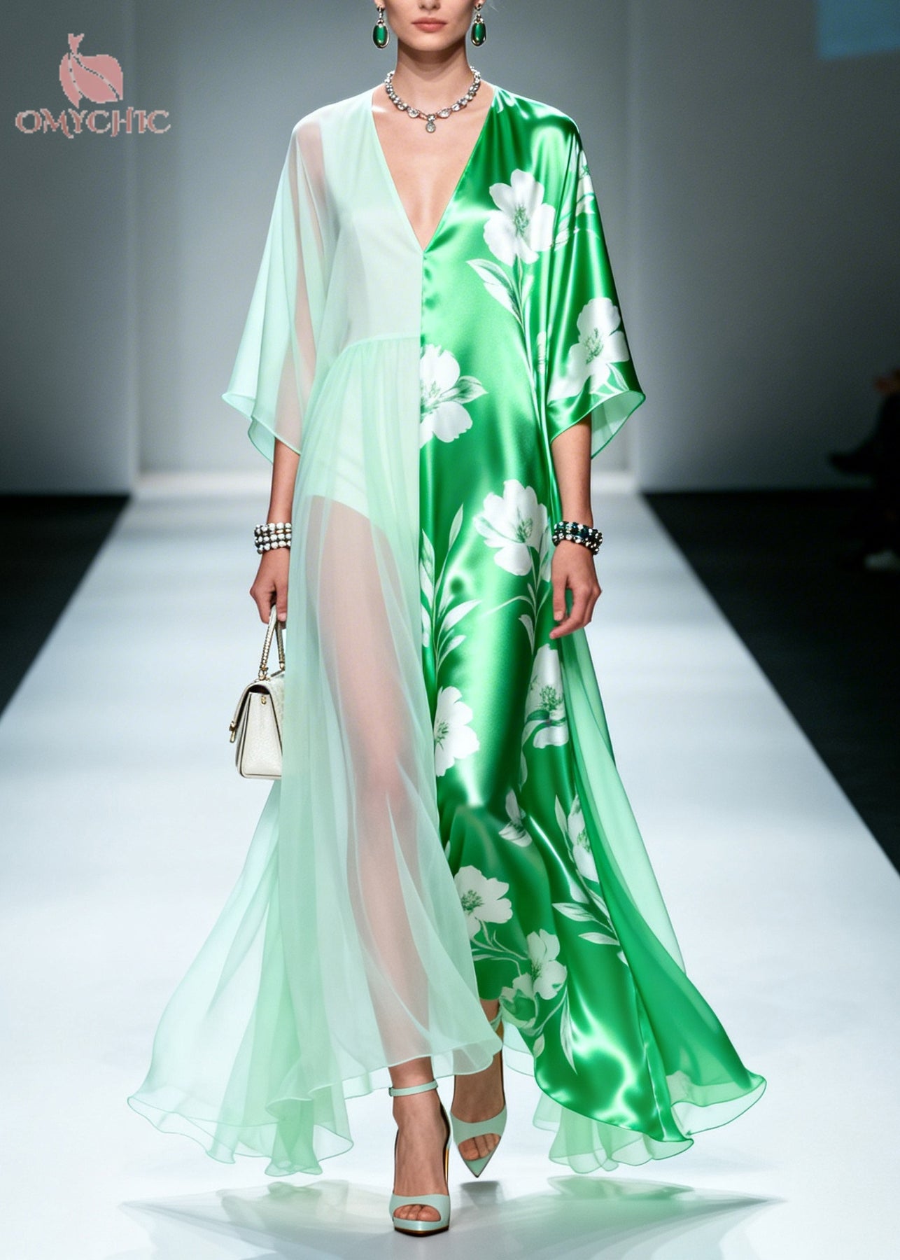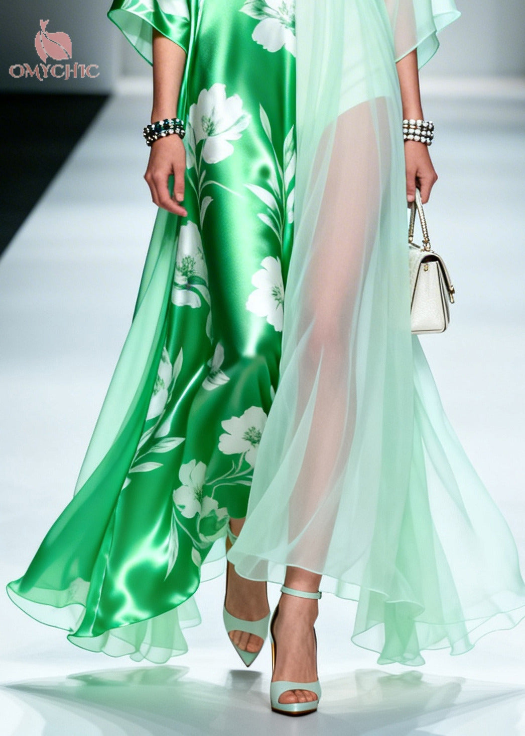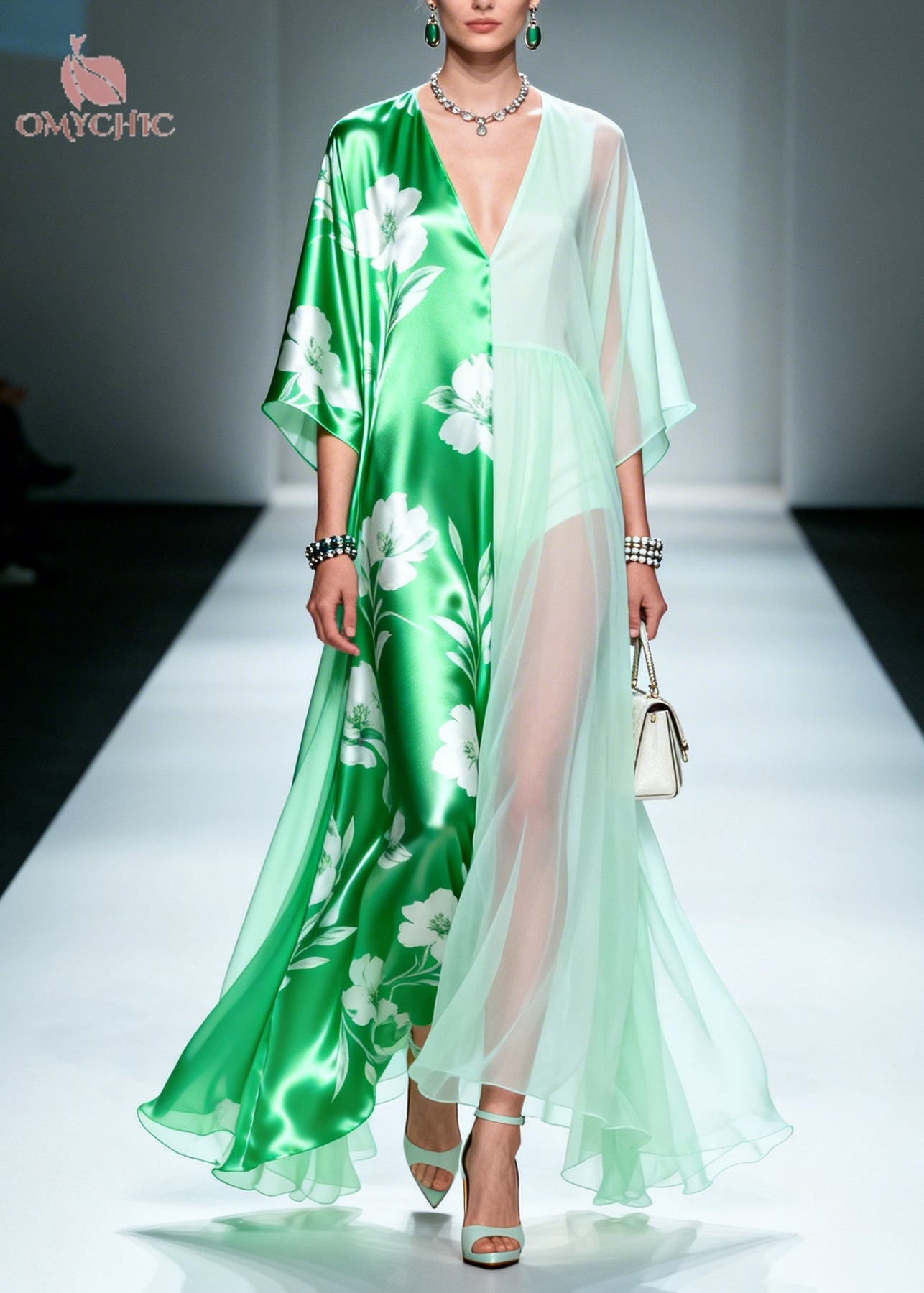 Beautiful Green Asymmetrical Patchwork Chiffon Maxi Dresses Summer