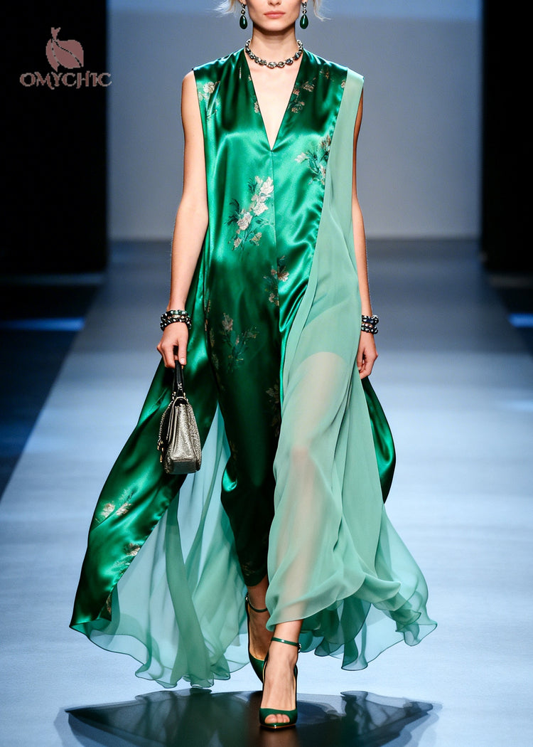 DIY Green Asymmetrical Patchwork Chiffon Holiday Dress Sleeveless