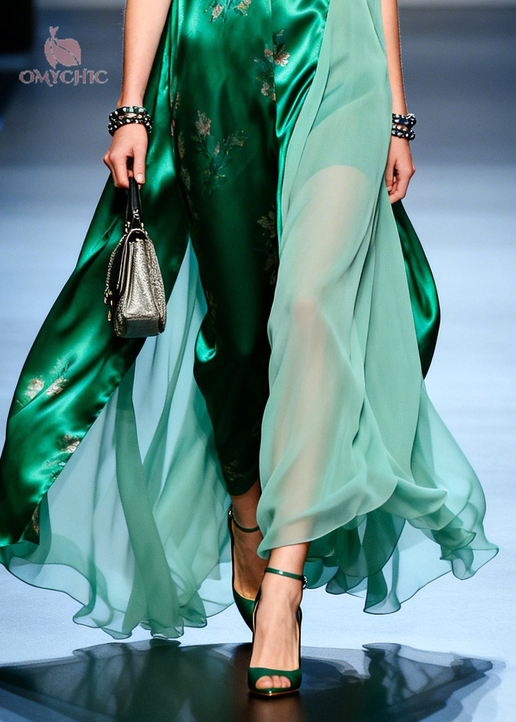 Bohemian Green Patchwork Exra Large Hem Silk Vacation Dresses Summer