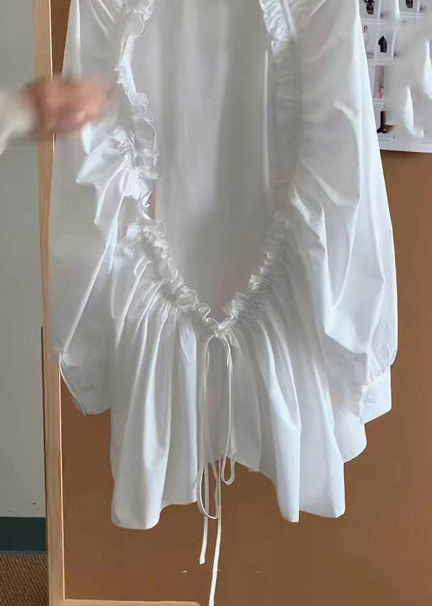Chic White Peter Pan Collar Ruffled Patchwork Backless Shirt Spring