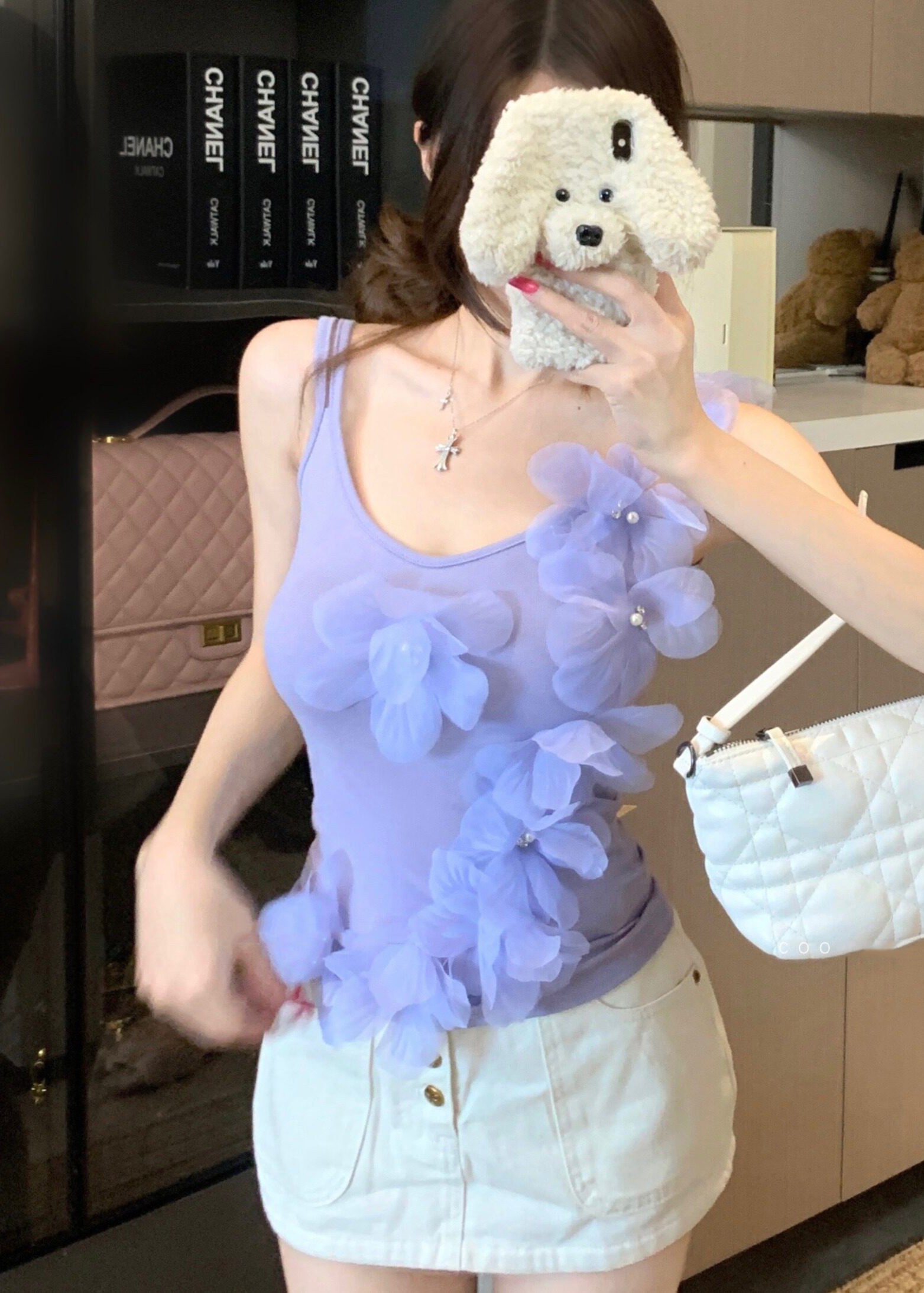 Classy Purple Handmade Floral Cotton Vests Summer