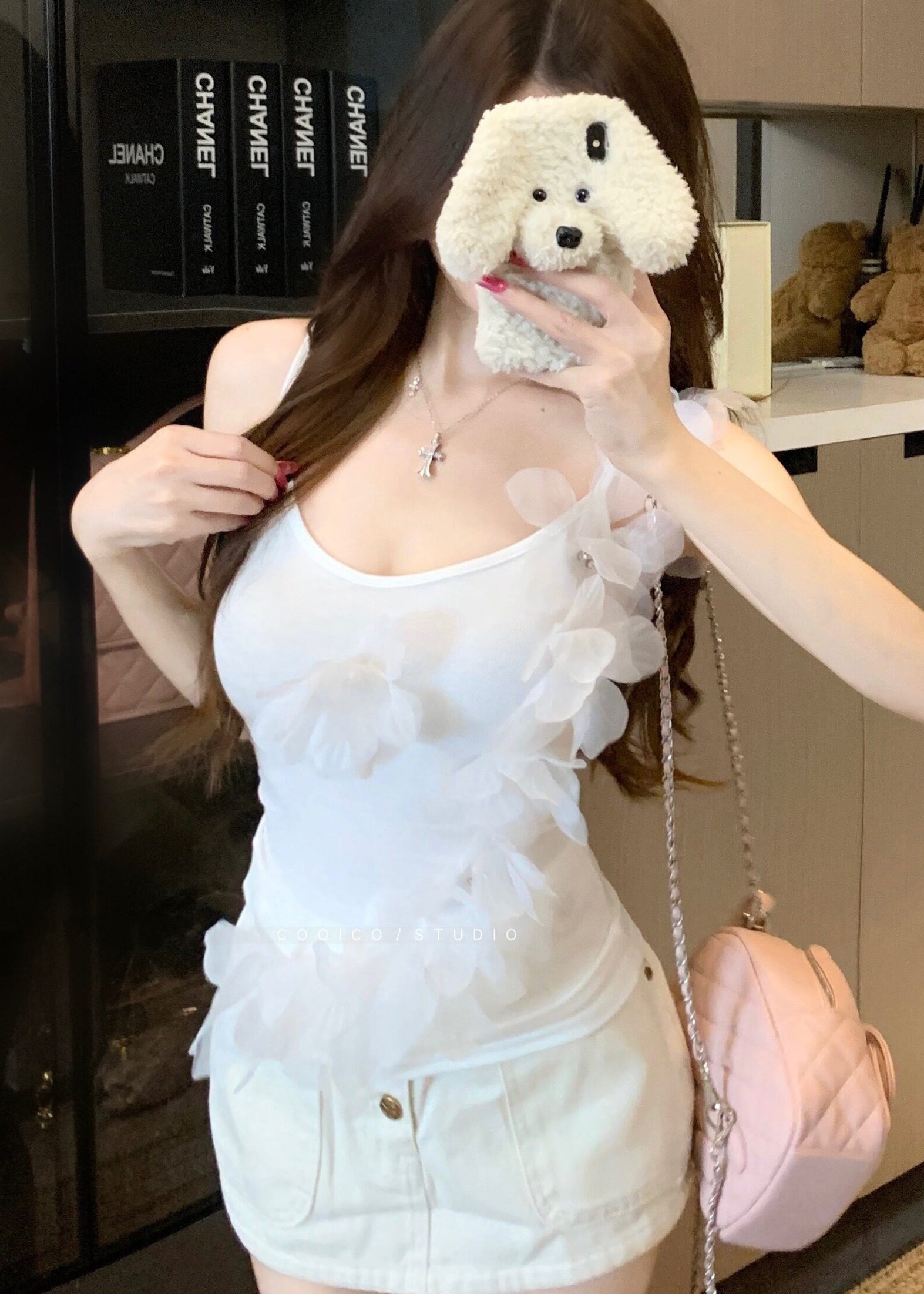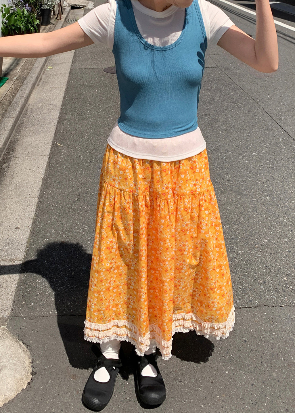 Boutique White Dot Patchwork Exra Large Hem Cotton Skirts Spring