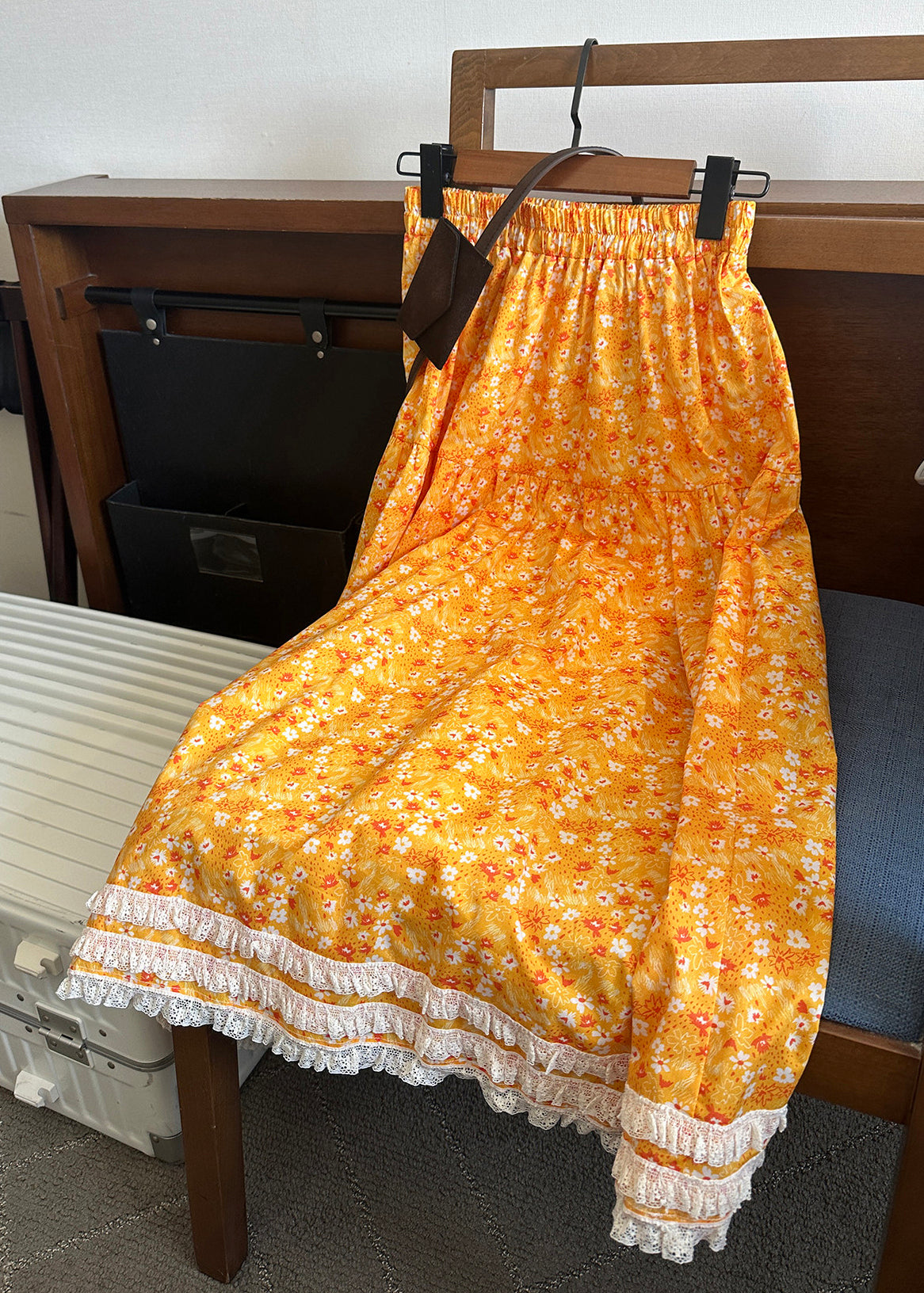 Elegant Yellow Print Lace Patchwork Cotton Skirt Summer