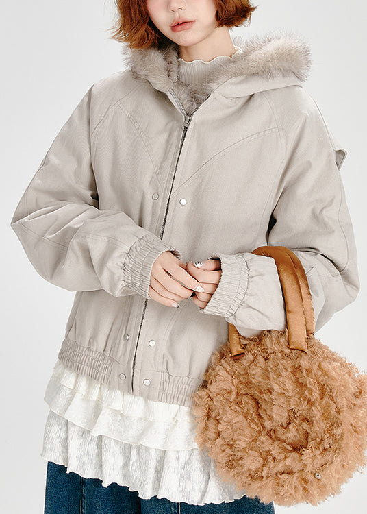 Casual Zip Up Fuzzy Fur Patchwork Fine Cotton Filled Hooded Jacket Winter