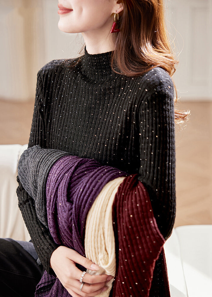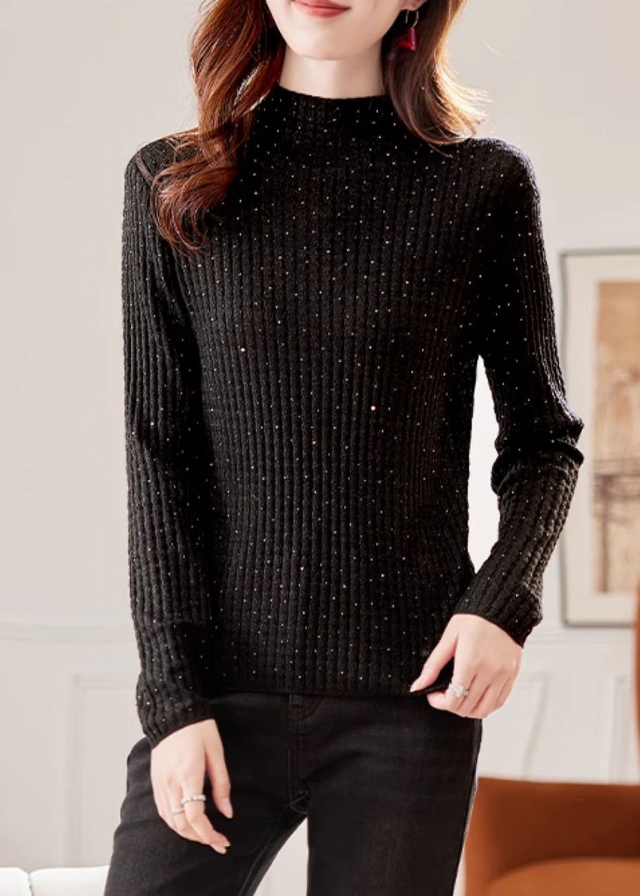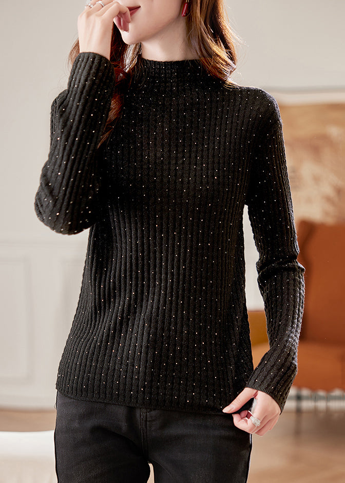 Handmade Black Turtleneck Zircon Knit Sweater Winter