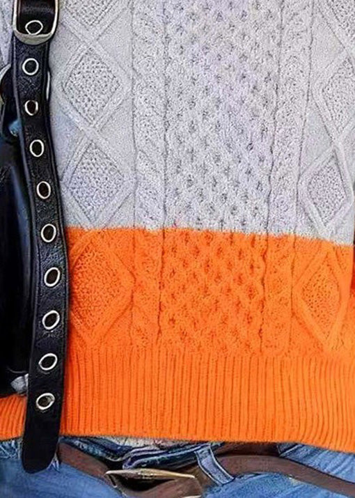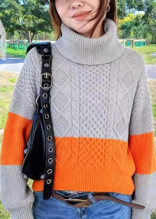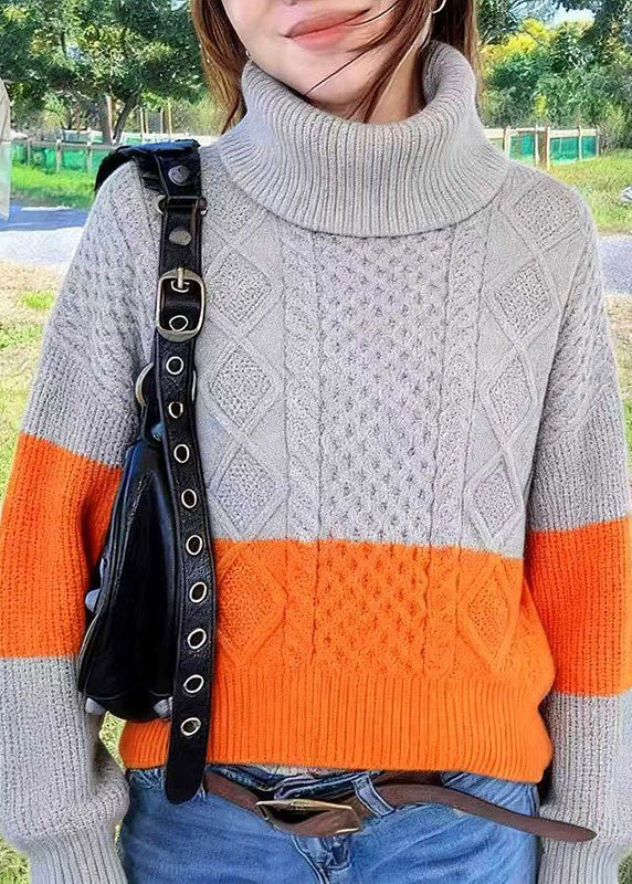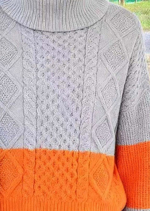 Loose Colorblock Hign Neck Thick Knit Sweater Spring