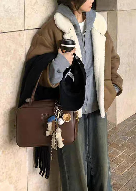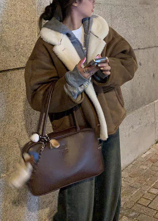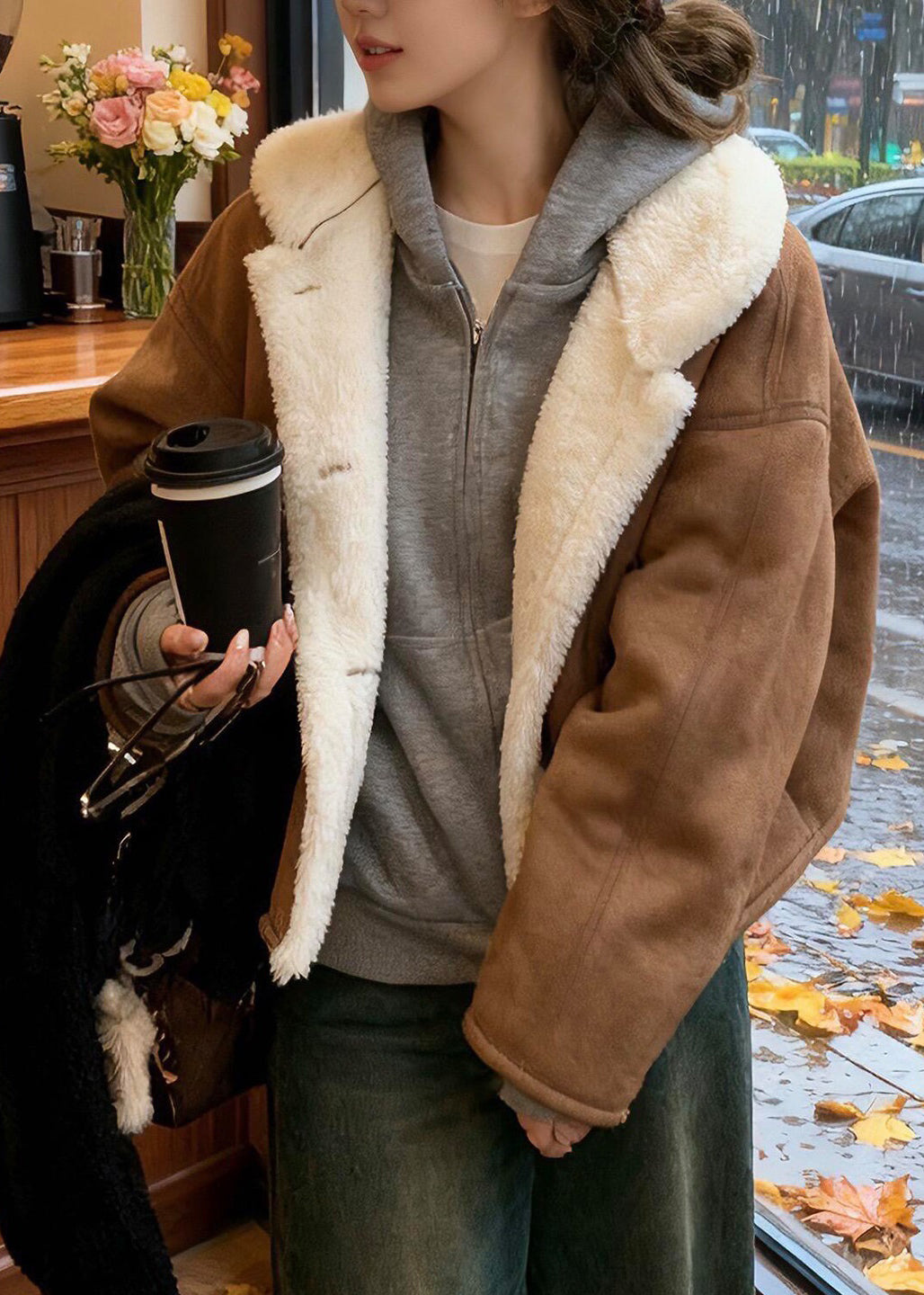 New Coffee Peter Pan Collar Pockets Fleece Wool Lined Coats Winter