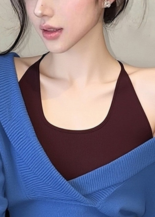 Slim Fit Blue False Two Pieces Patchwork Knit Sweaters Fall
