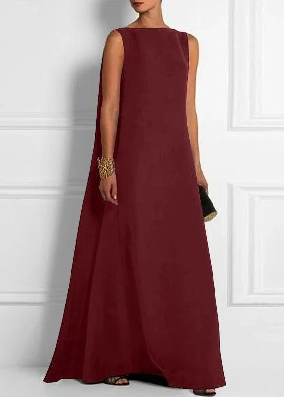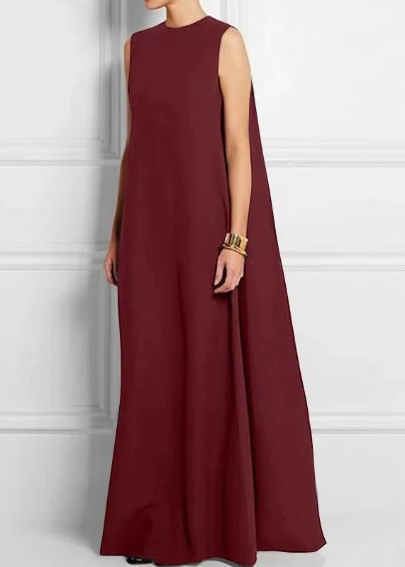 French Black High Waist Solid Cotton Ankle Dress Sleeveless