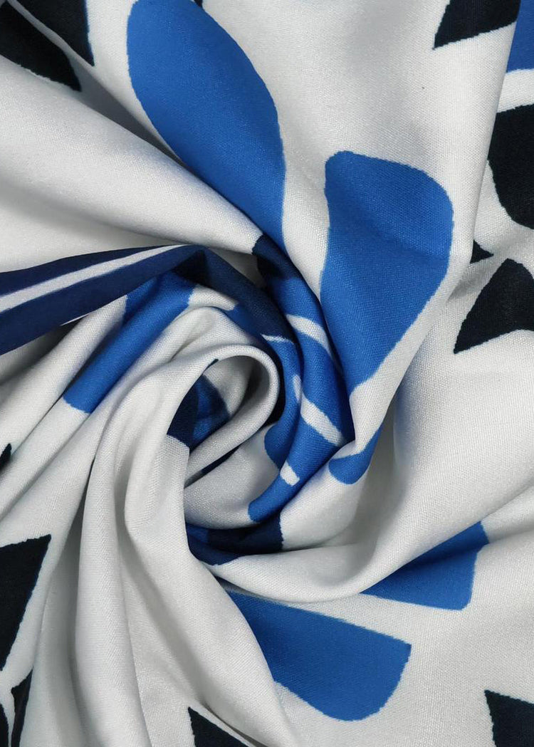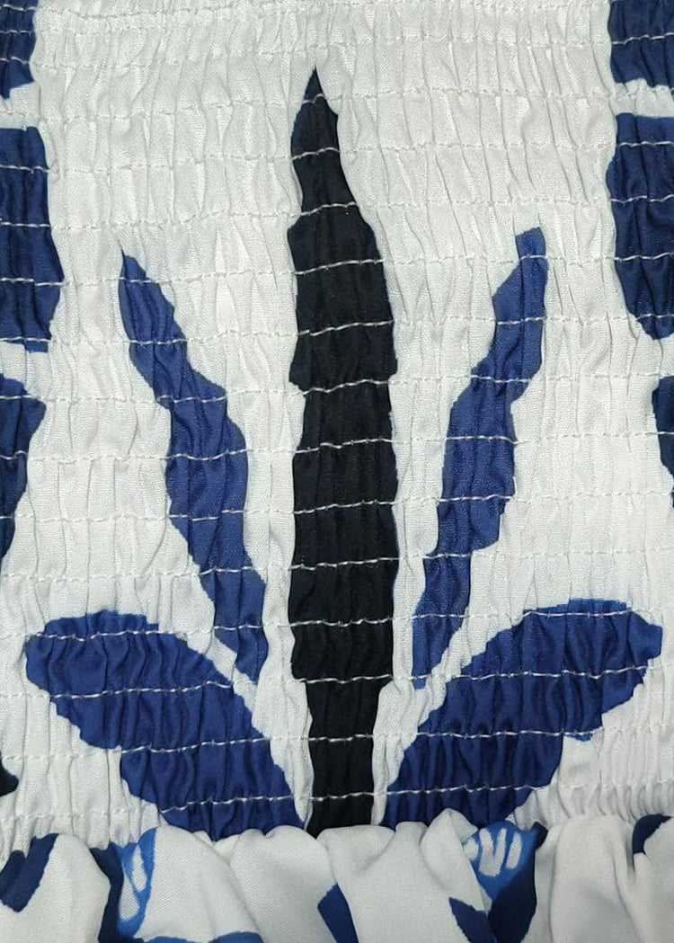 French Blue Print Lace Up Cotton Vacation Dresses Sleeveless