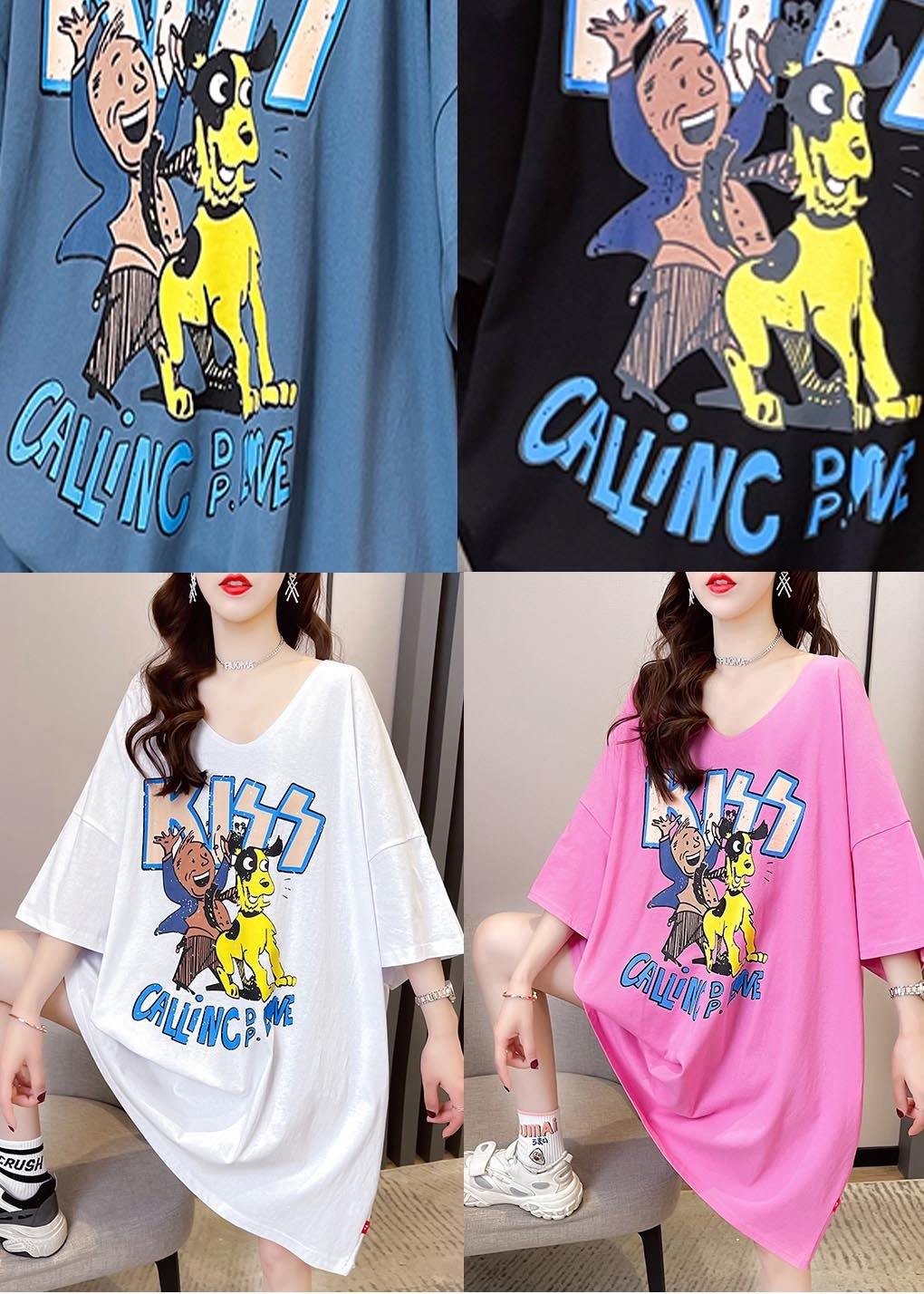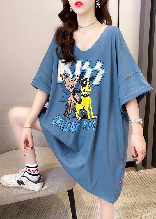 Natural Blue Graphic Vacation Summer Cotton Dress