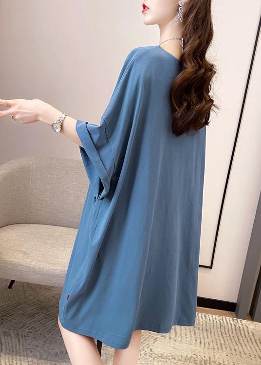 Natural Blue Graphic Vacation Summer Cotton Dress - Omychic