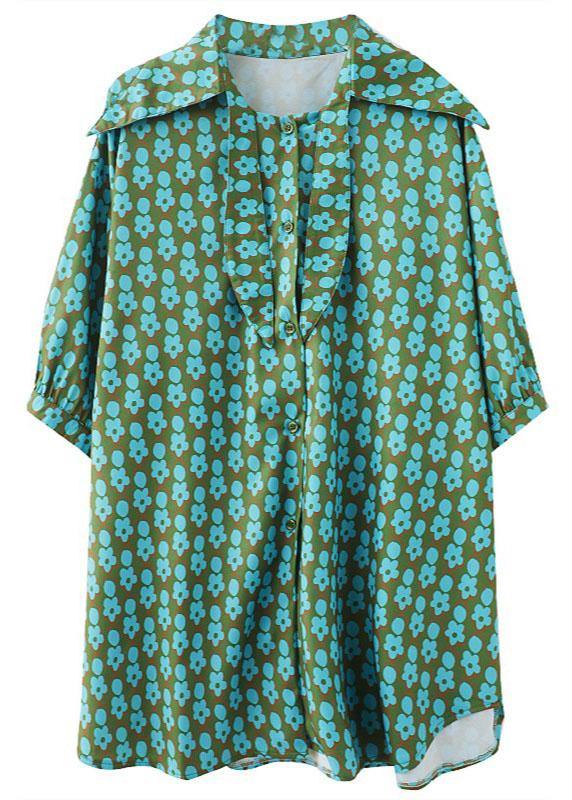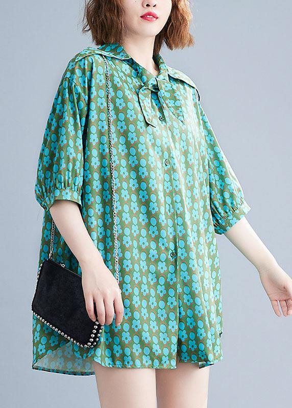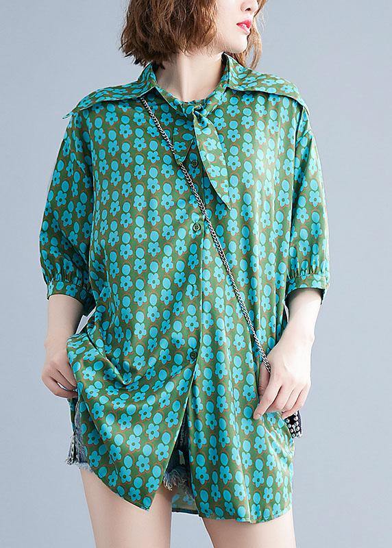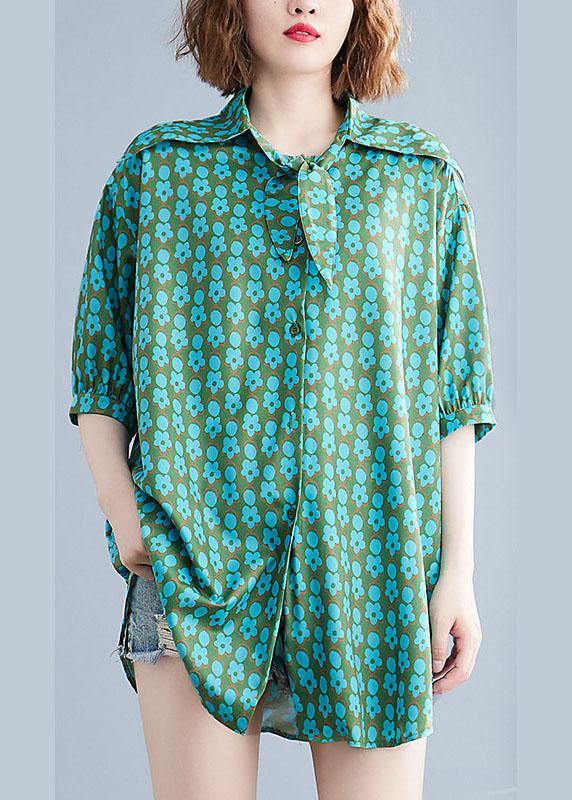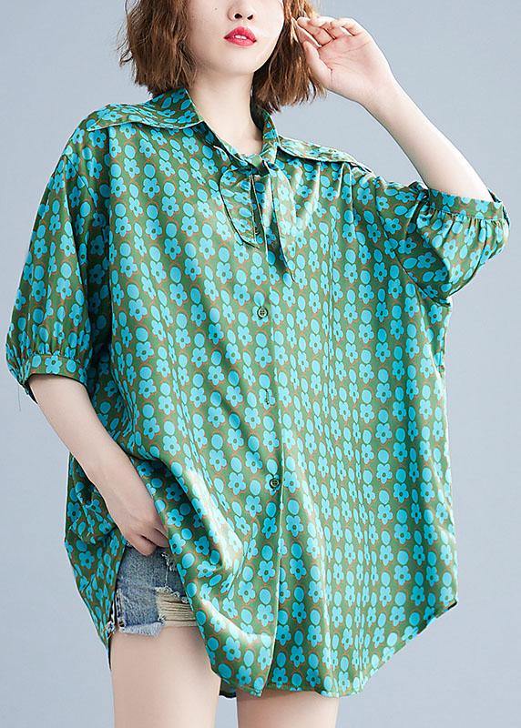 Natural Blue Loose Print Bow Fall Shirt Half Sleeve