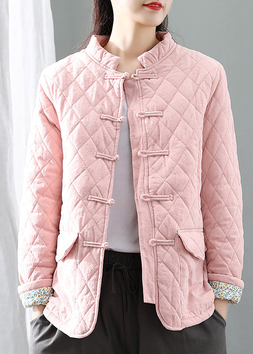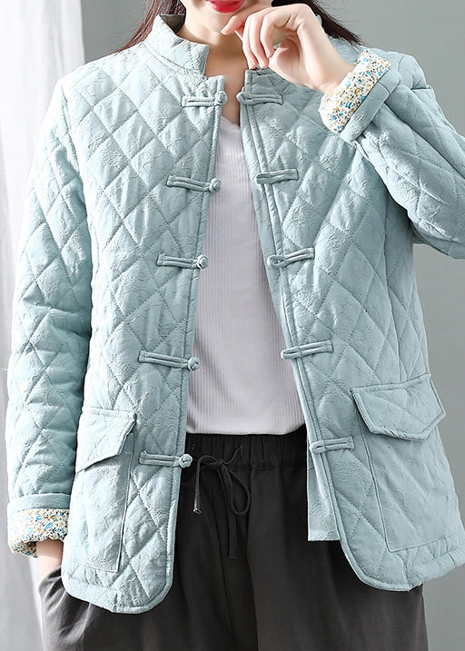 New Sky Blue Button Pockets Patchwork Thick Parka Long Sleeve