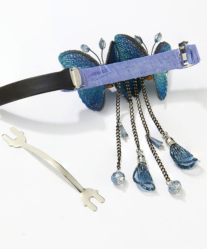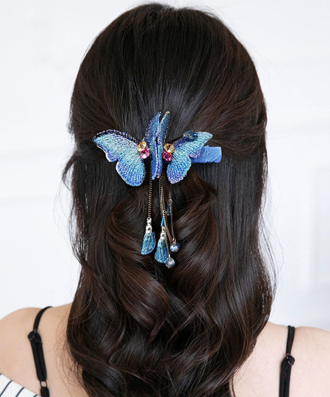 Oversize Blue Zircon Butterfly Embroidery Spring Tassel Hairpin