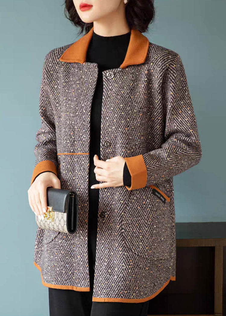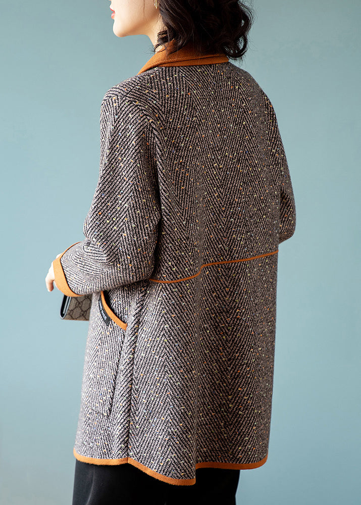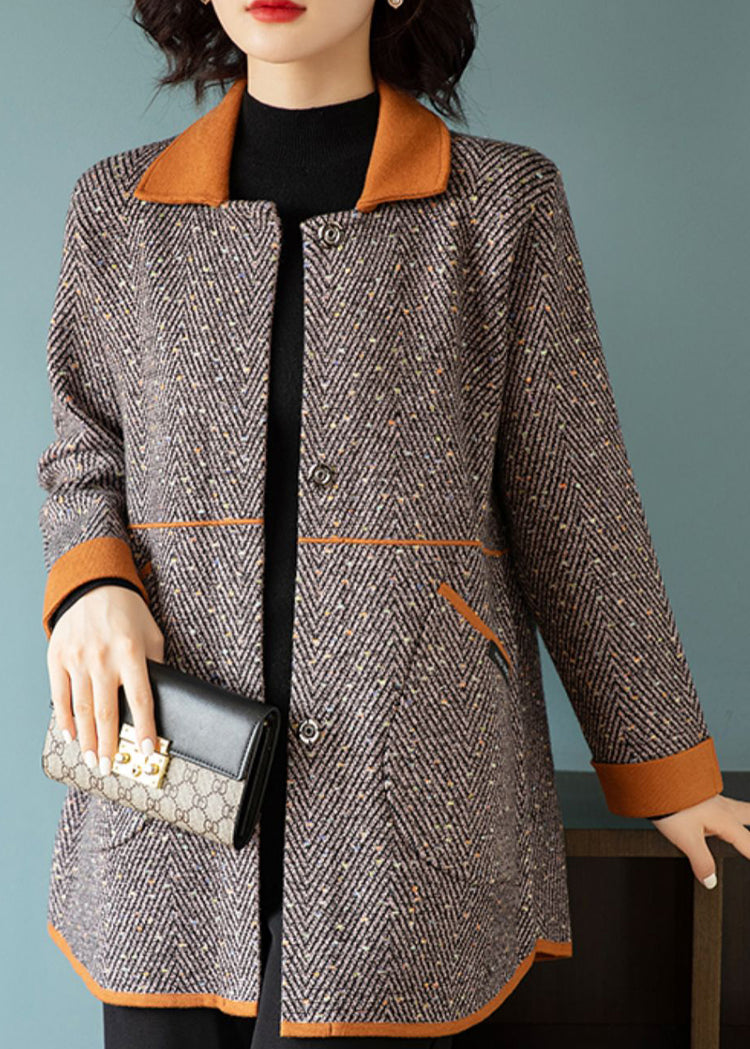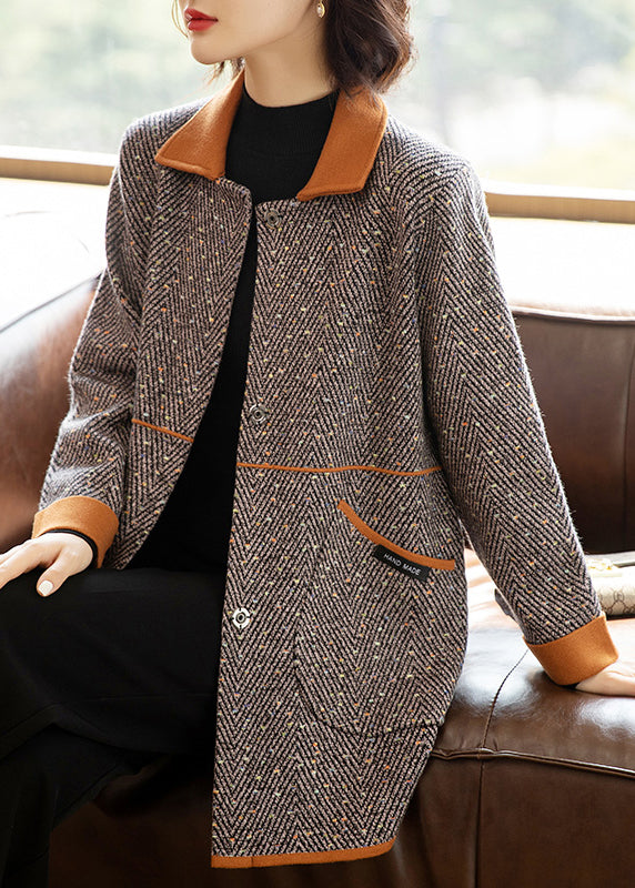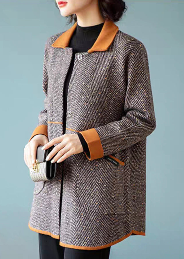 Italian Peter Pan Collar Button Pockets Patchwork Woolen Coat Fall