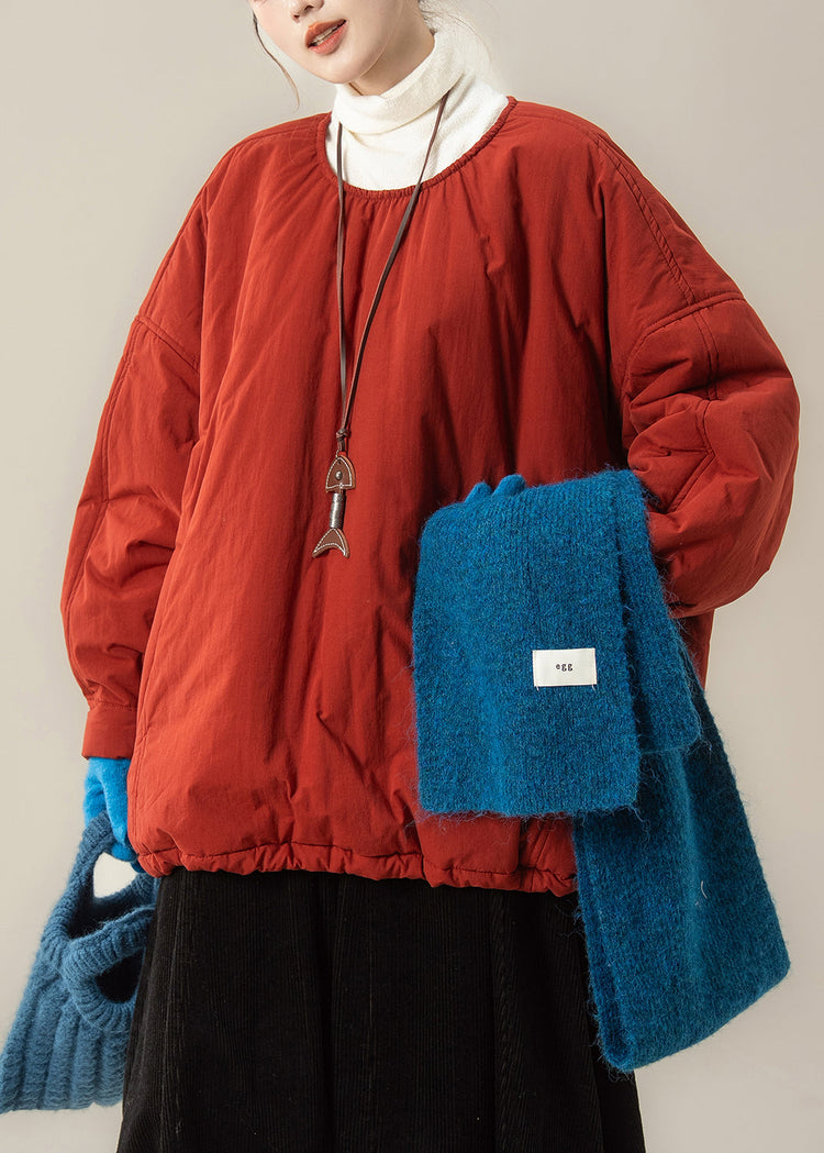 Plus Size Red Button Drawstring Solid Fine Cotton Filled Parka
