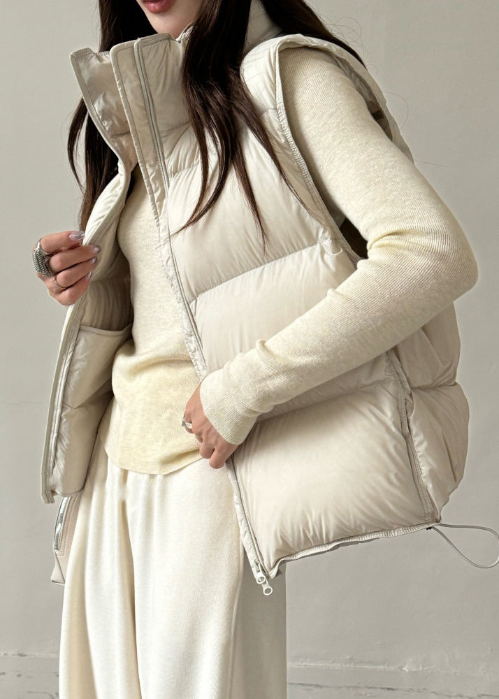 Beige Pockets Duck Down Waistcoat Stand Colla Sleeveless