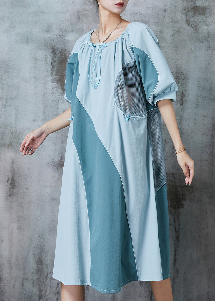 French Blue Grey Hollow Out Patchwork Cotton Maxi Dresses Summer