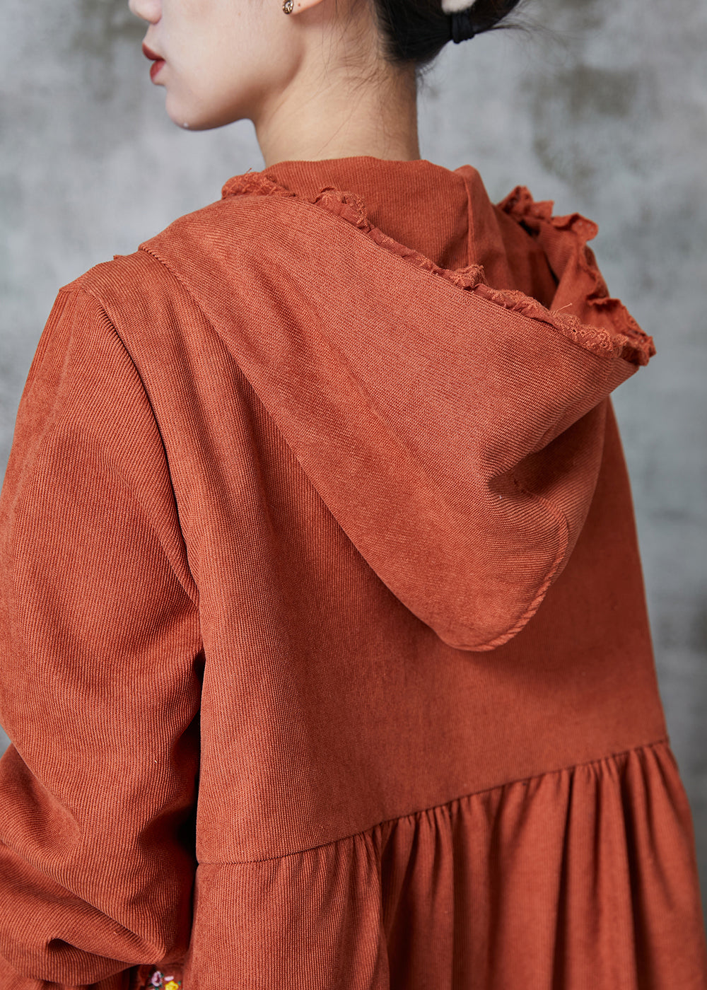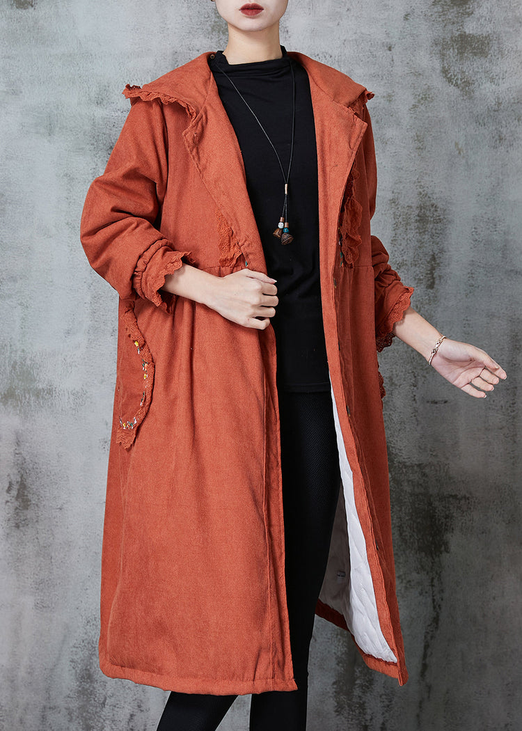 Unique Orange Embroidered Patchwork Lace Fine Cotton Filled Trench Spring