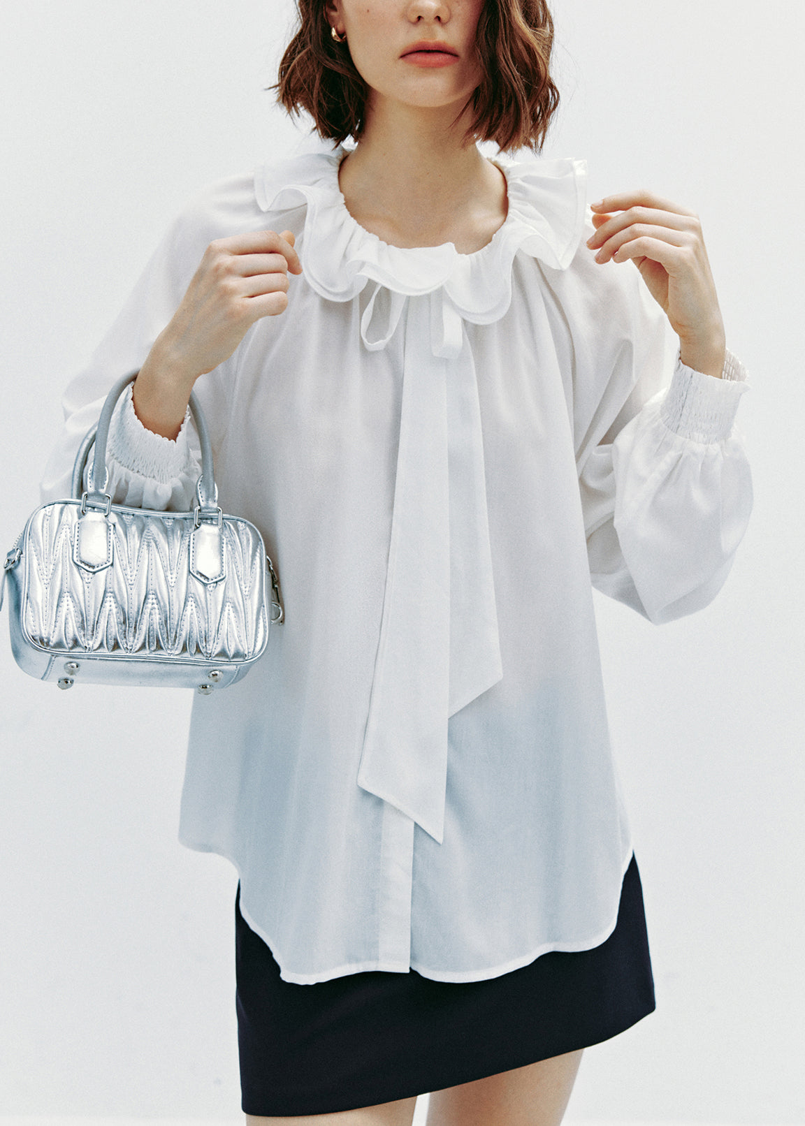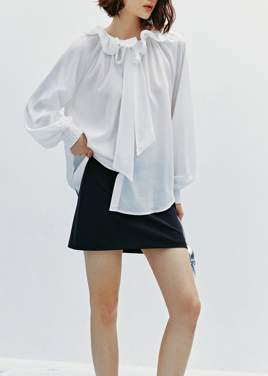 Brief White Ruffled Tie Lace Shirt Flare Sleeve