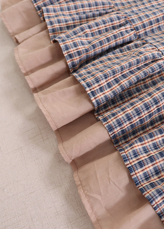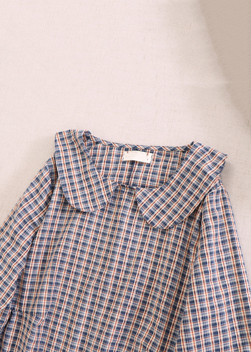 Beautiful Red Plaid Peter Pan Collar Ruffled Cotton Dresses Spring