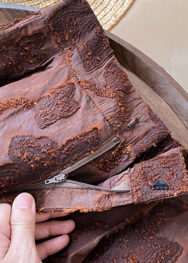 Jacquard Brown Zippered High Waist Cotton Pants Fall