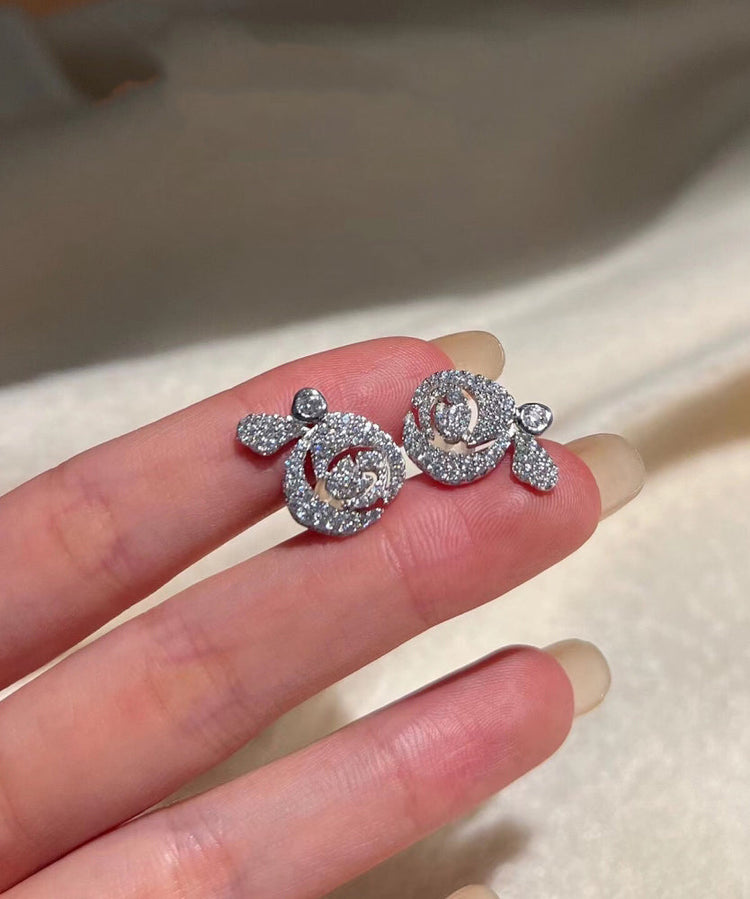 Art Silk Sterling Silver Zircon Rose Stud Earrings