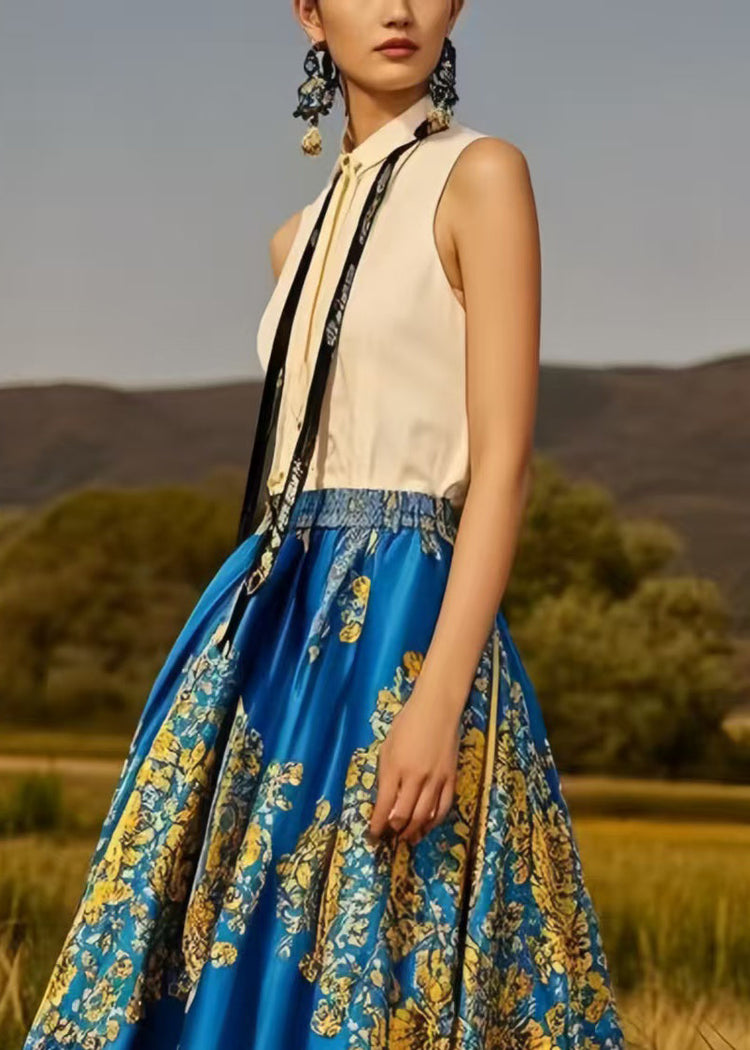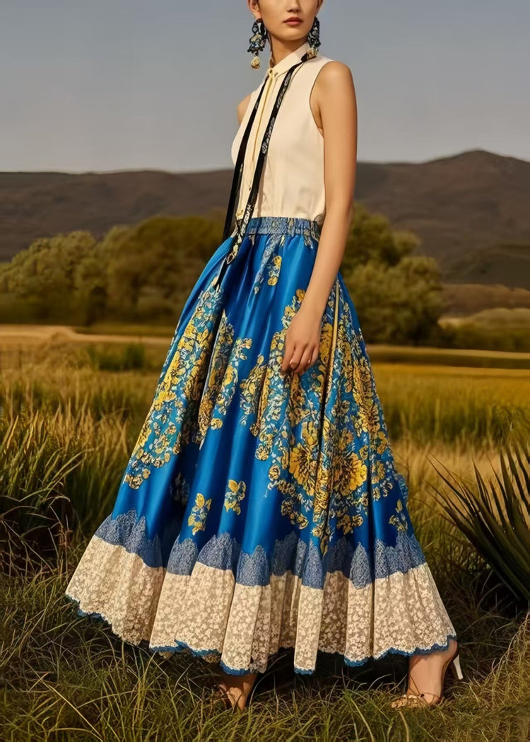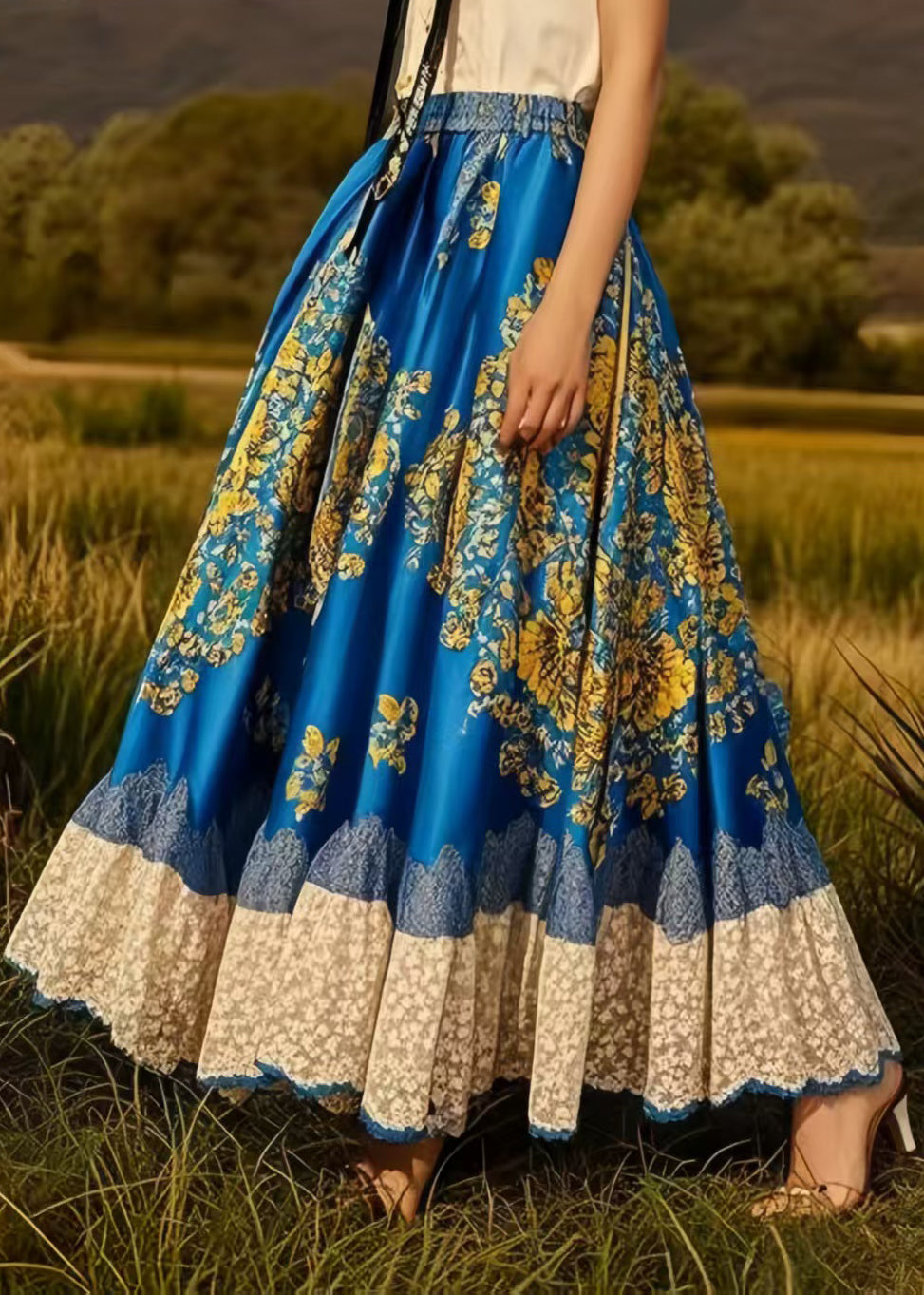 Boutique Blue Print Exra Large Hem Silk Skirt Spring