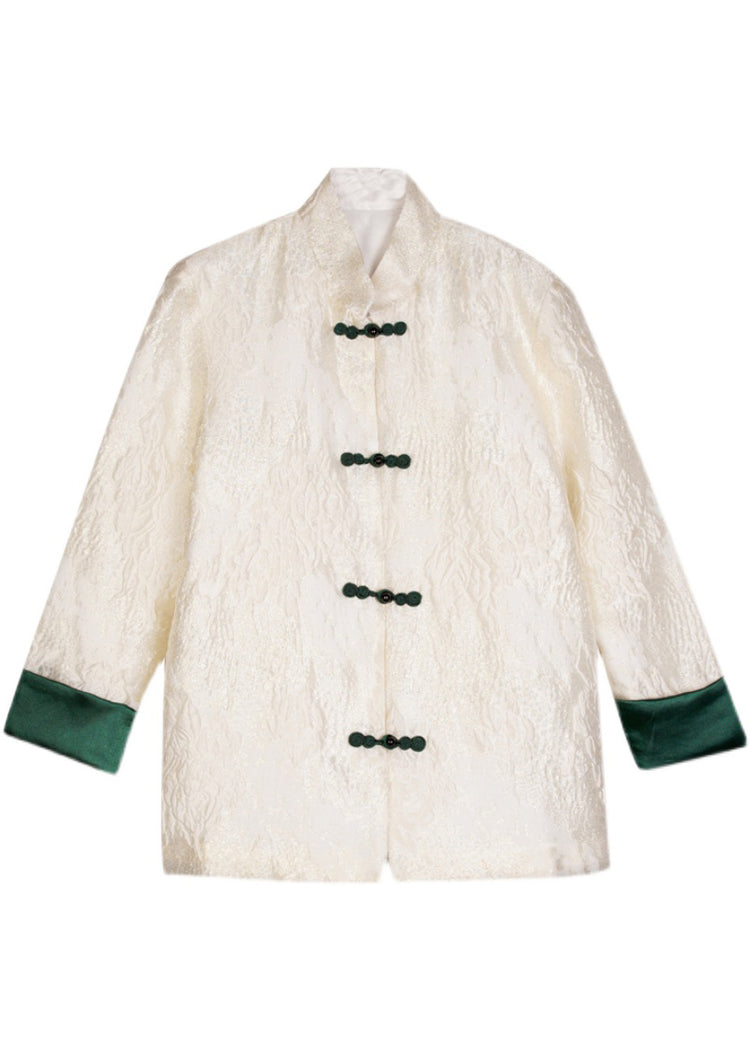 Boutique White Stand Collar Jacquard Silk Coat Long Sleeve