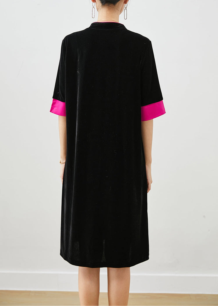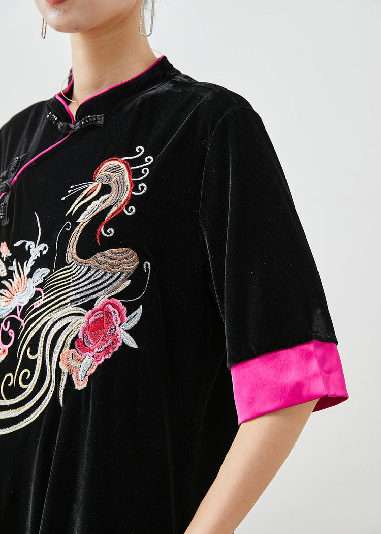 Classy Black Embroideried Silk Velour Dresses Half Sleeve