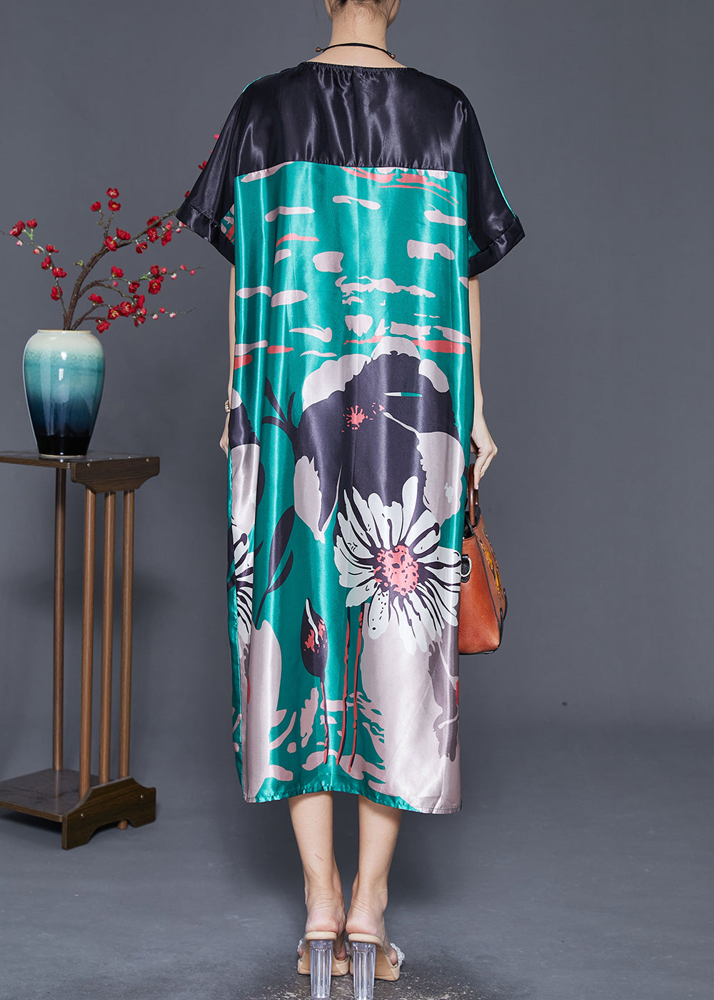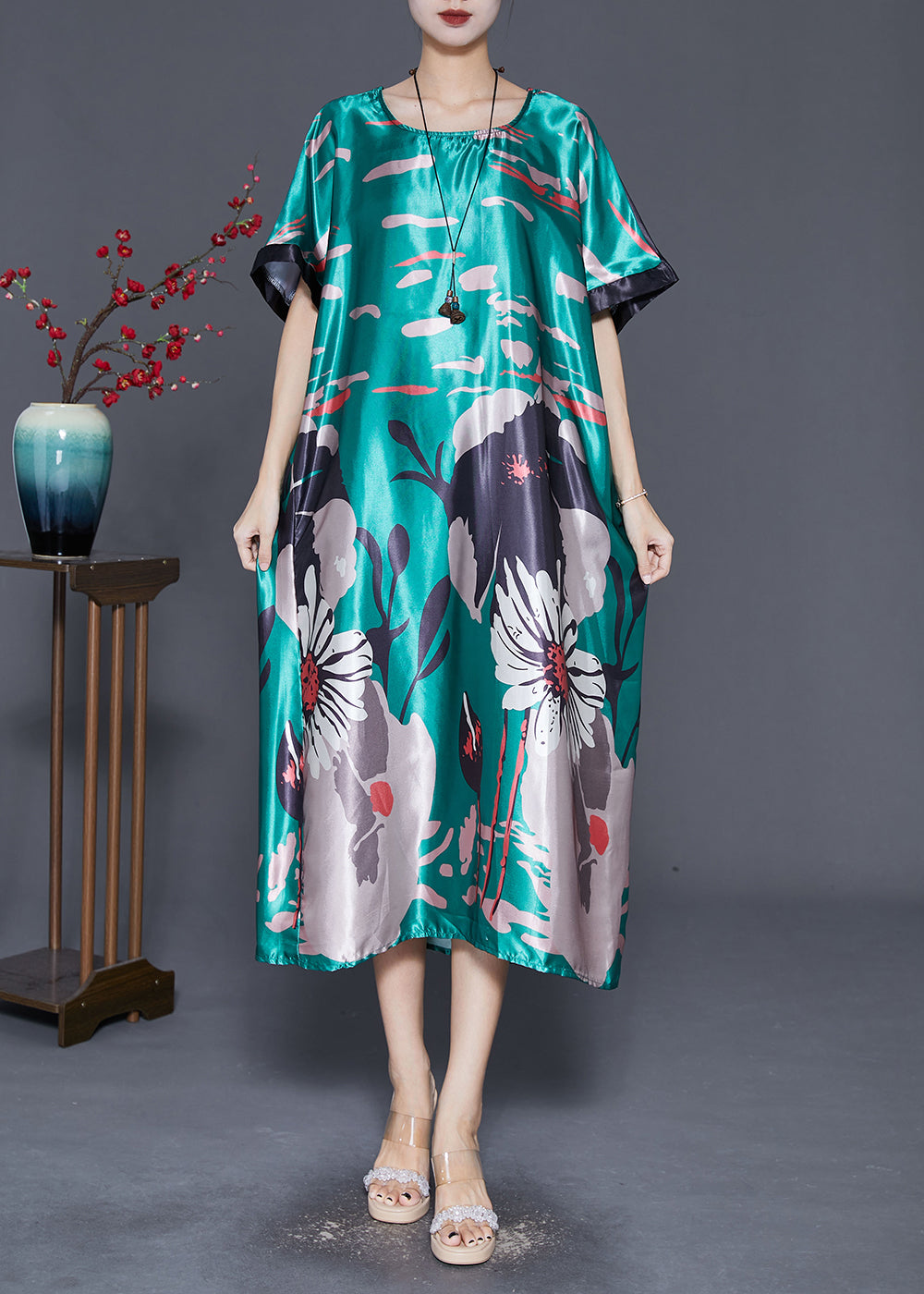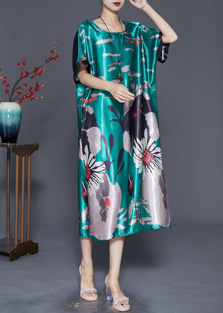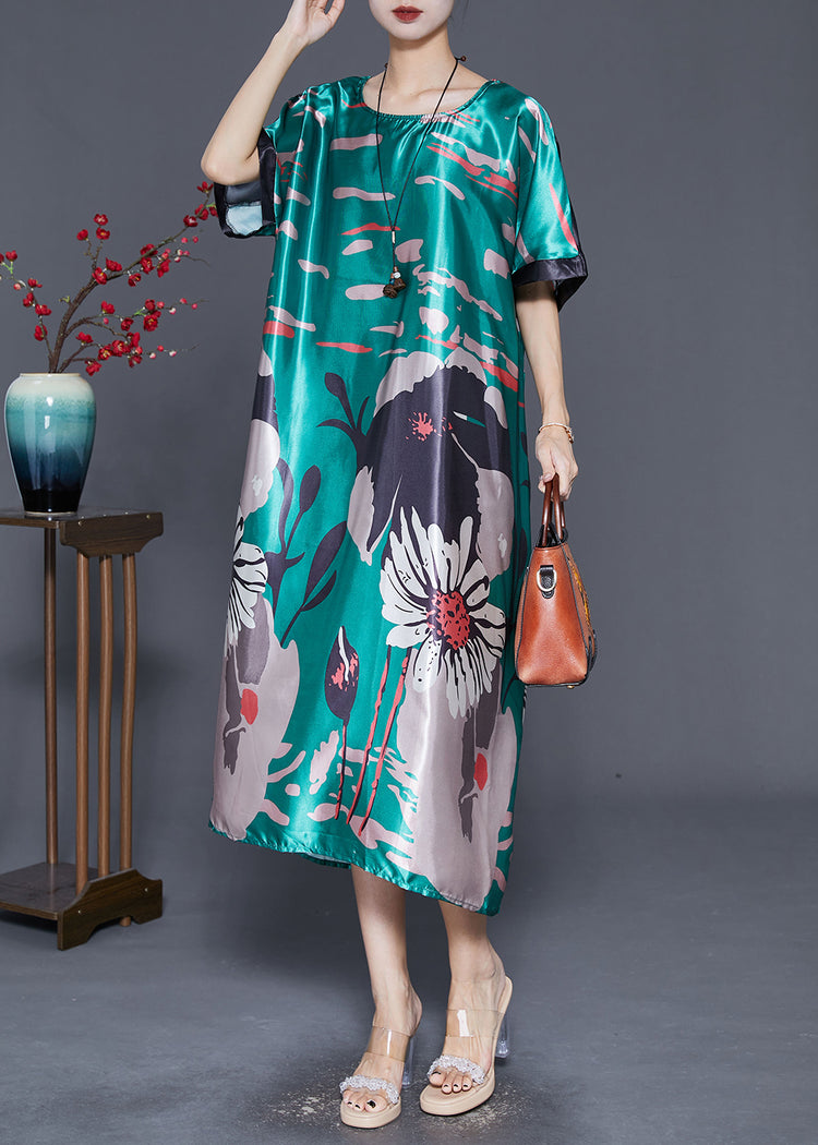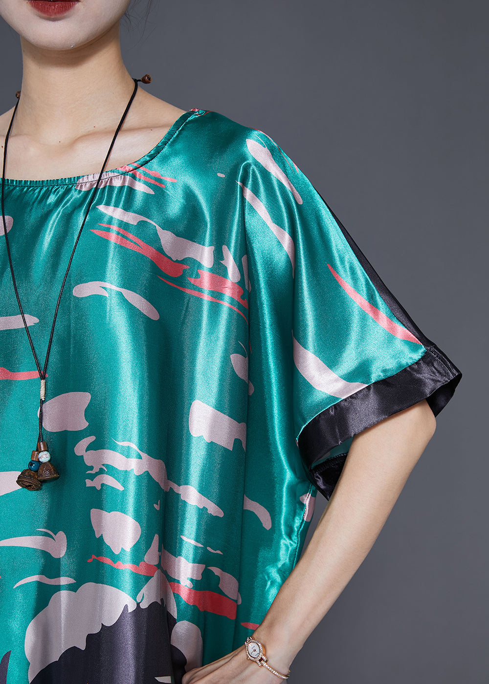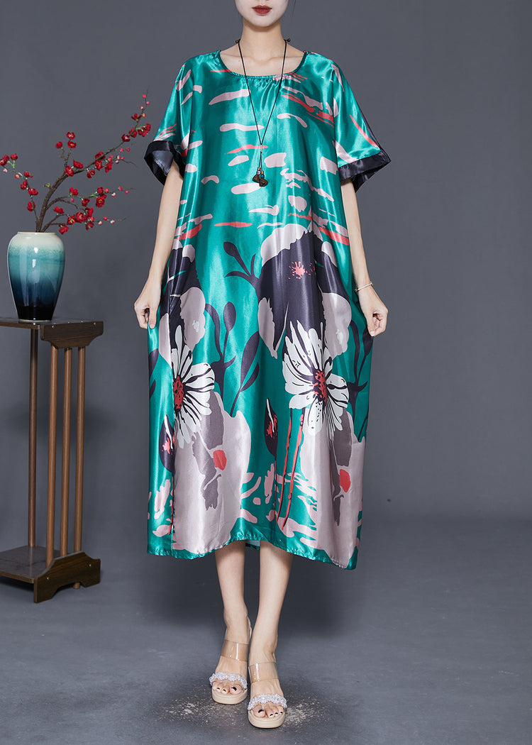 DIY Peacock Green Oversized Print Silk Dress Summer
