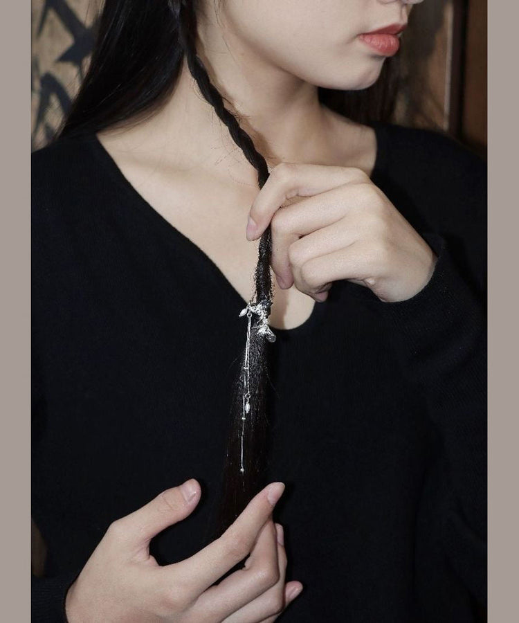 Fine Silk Sterling Silver Crabapple Blossom Tassel Hairpin