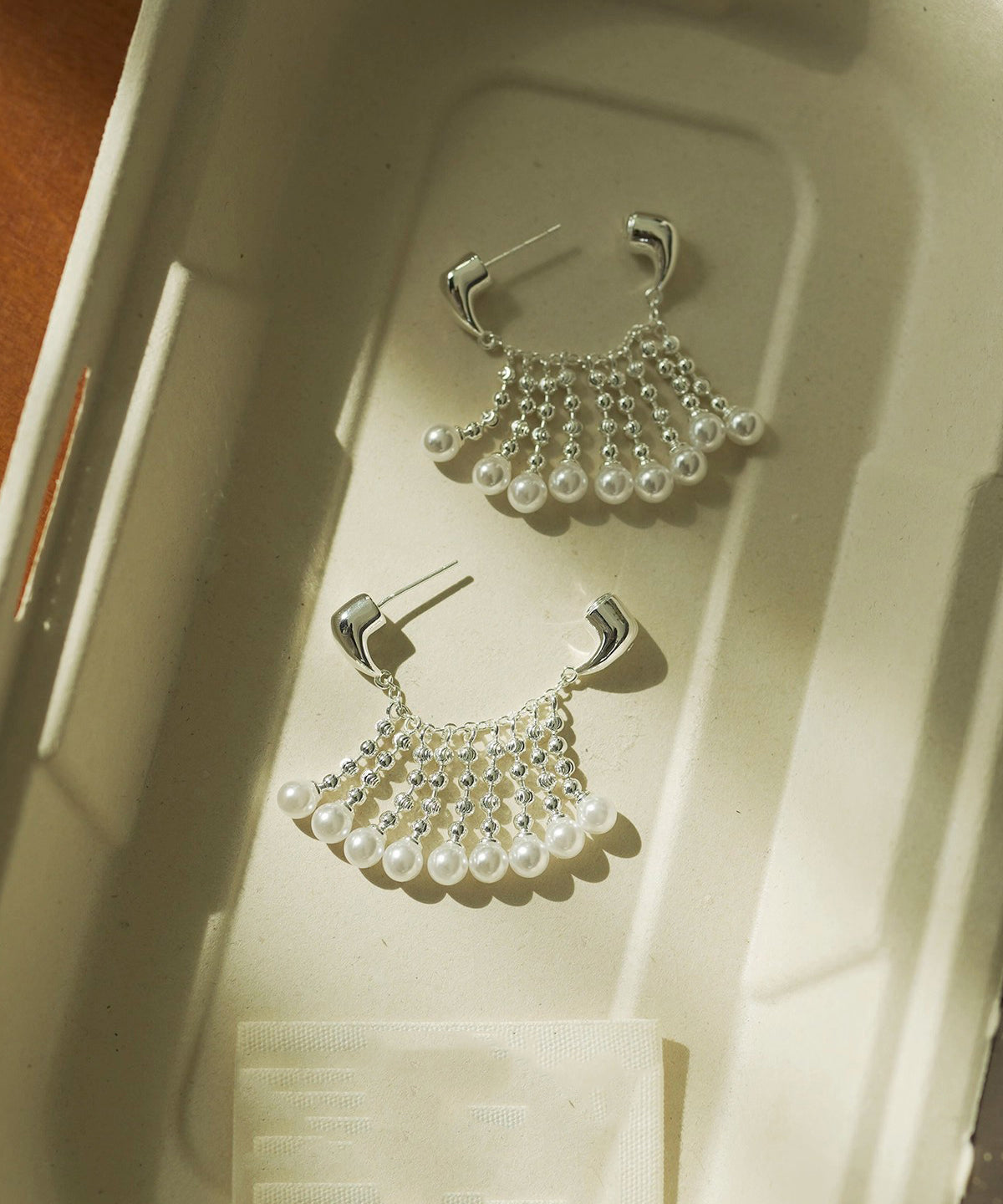 Modern Silk Copper Overgild Pearl Tassel Hoop Earrings