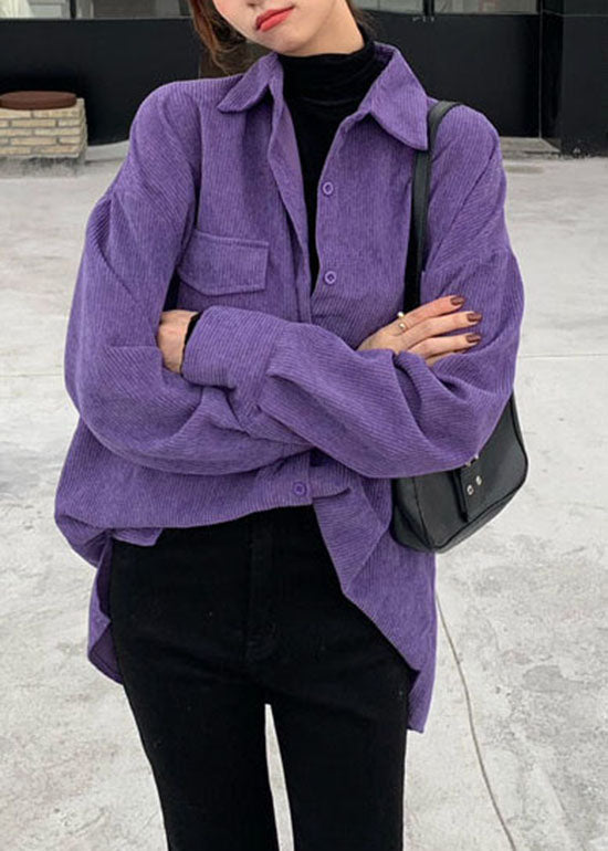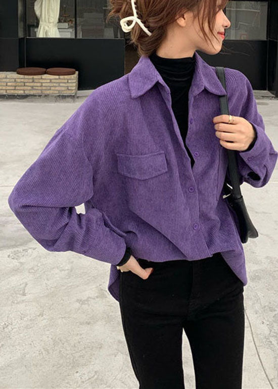 Plus Size Purple button Peter Pan Collar Silk Velour shirt Spring