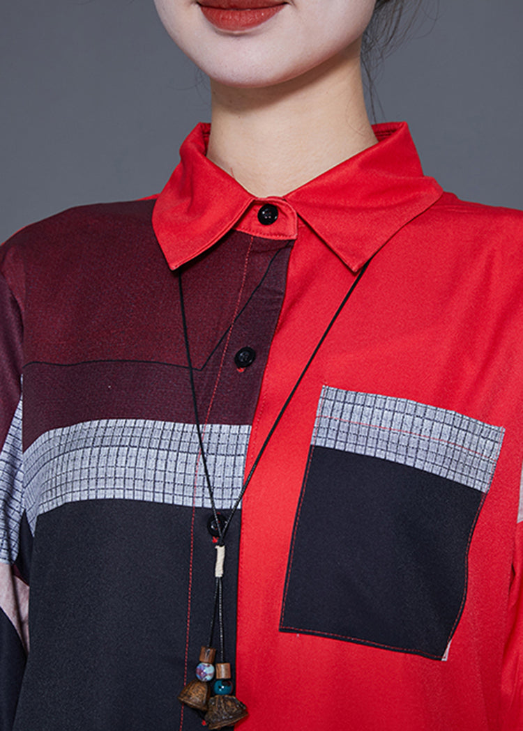 Plus Size Red Asymmetrical Print Silk Maxi Dress Summer