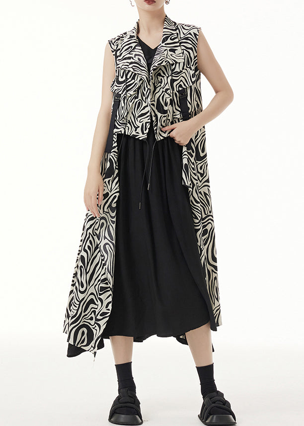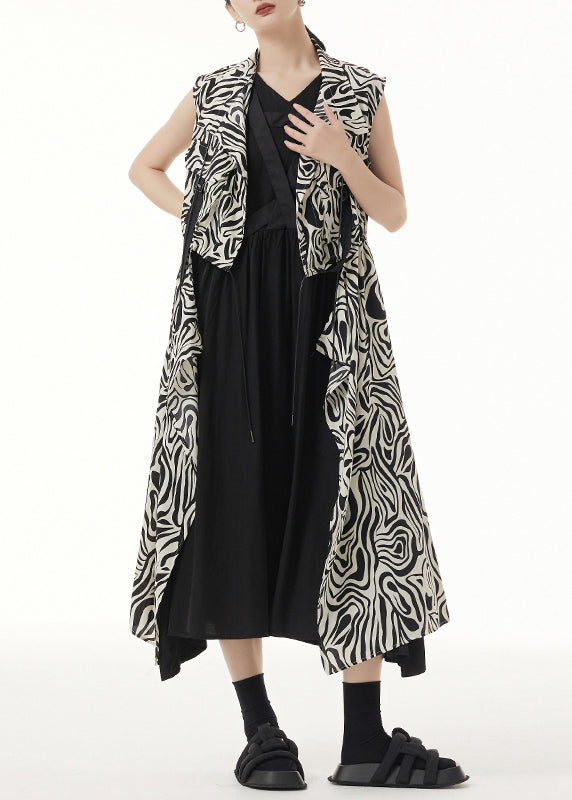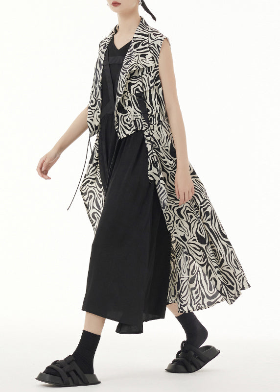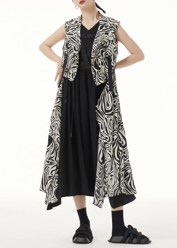 Unique Zebra Pattern Asymmetrical Lace Up Patchwork Silk Long Waistcoat Sleeveless