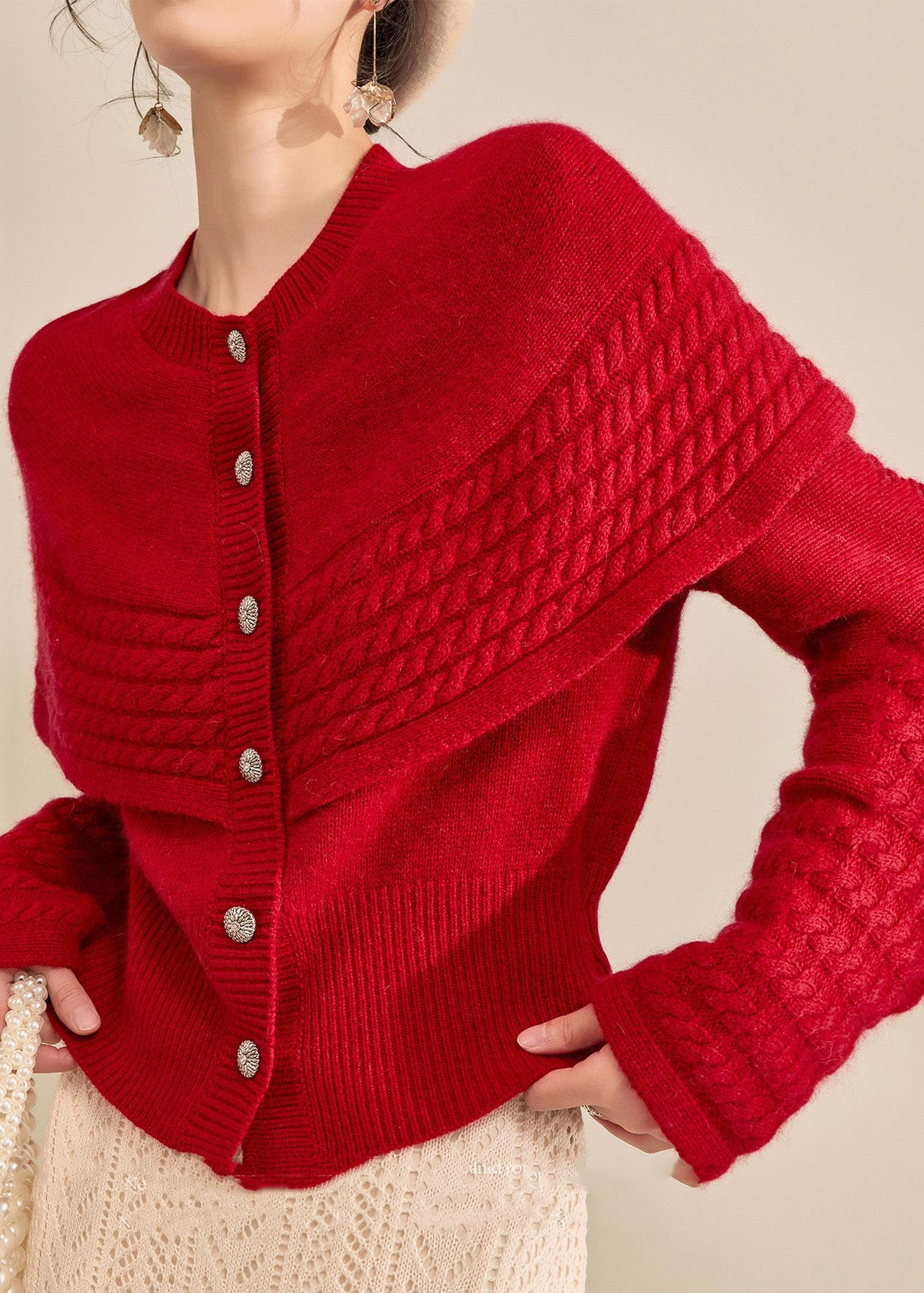 Vogue Red Button Shawl Fake Two pieces Thick Cotton Knit Sweater Fall
